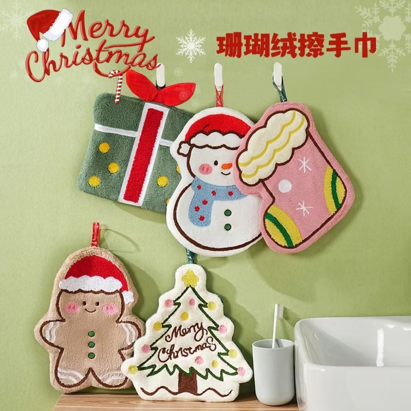 圣诞擦手巾可爱卡通厨房加厚挂式吸水速干毛巾手帕儿童抹布卫生间