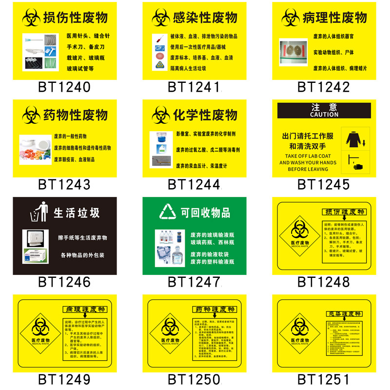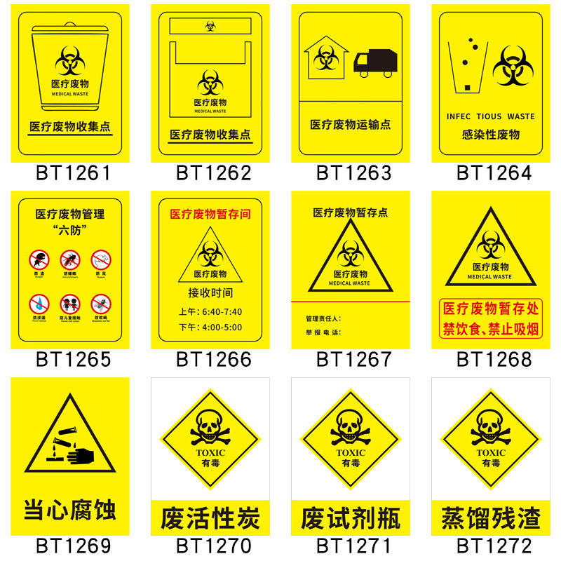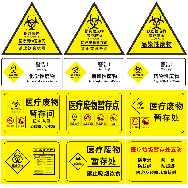 医疗废物安全警示牌温馨提示医院卫生所药房感染性化学性损伤性废物医疗垃圾暂存处五防废包装袋标签贴纸标牌