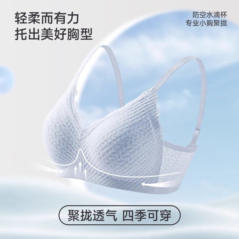 内衣女小胸聚拢上托防下垂性感无痕蕾丝美背文胸无钢圈乳胶胸罩夏