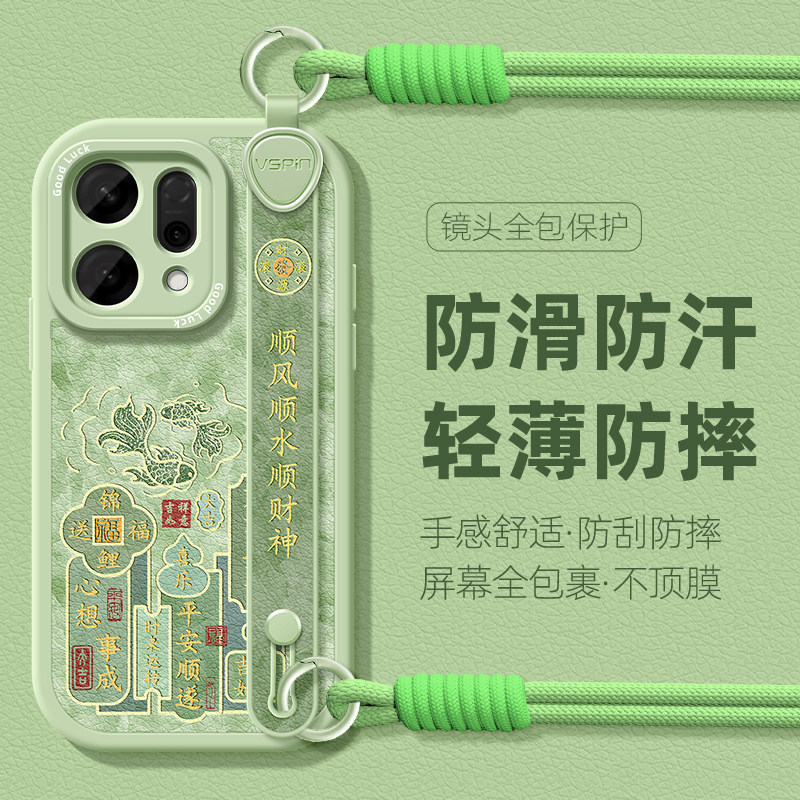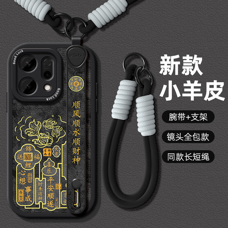手绳适用OPPOReno14pro手机壳FindX8S+新款腕带13保护套12硅胶软壳11福气锦鲤10简约国潮9挂绳6全包7高级防摔