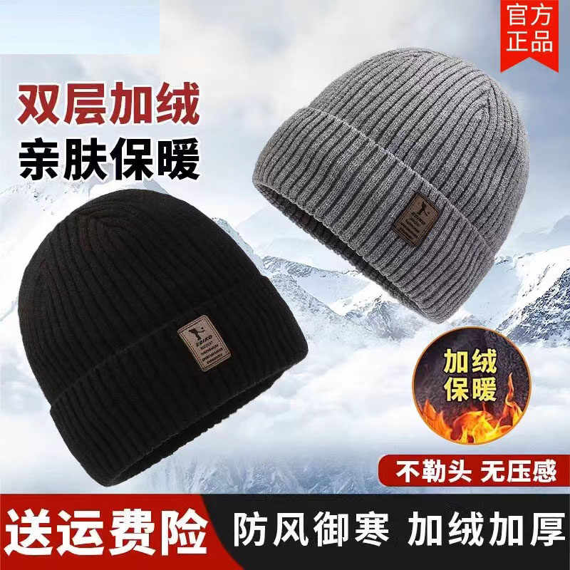 帽子男冬天防寒针织帽加绒加厚保暖毛线帽棉帽冬季骑行防风冷帽
