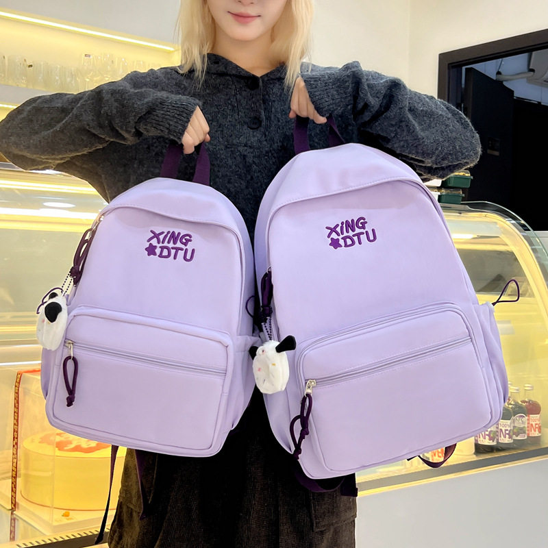 新款轻便旅行背包刺绣潮流初高中大学生书包大容量百搭简约双肩包