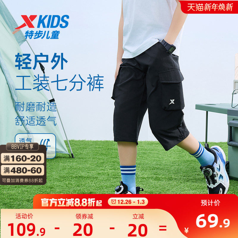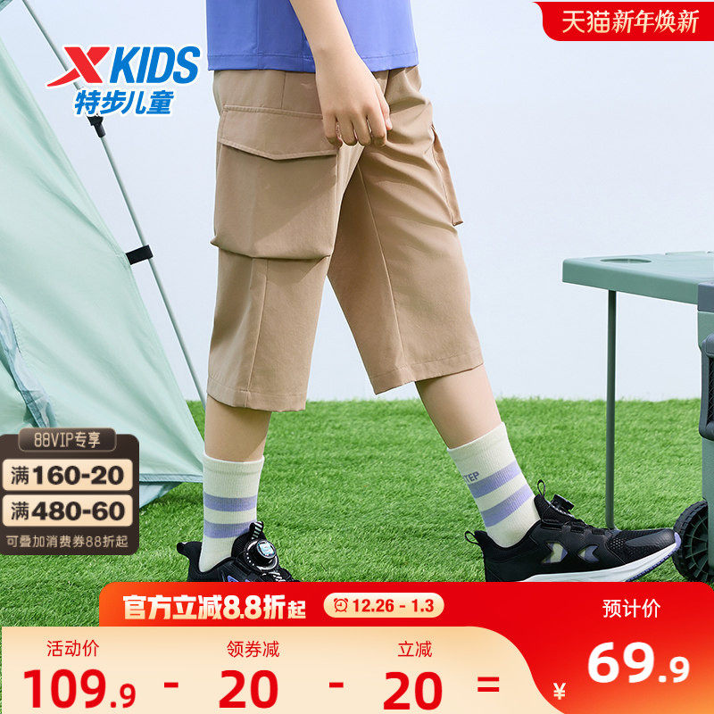 特步童装男童工装裤儿童速干七分裤2025夏季新款中大童夏装短裤子