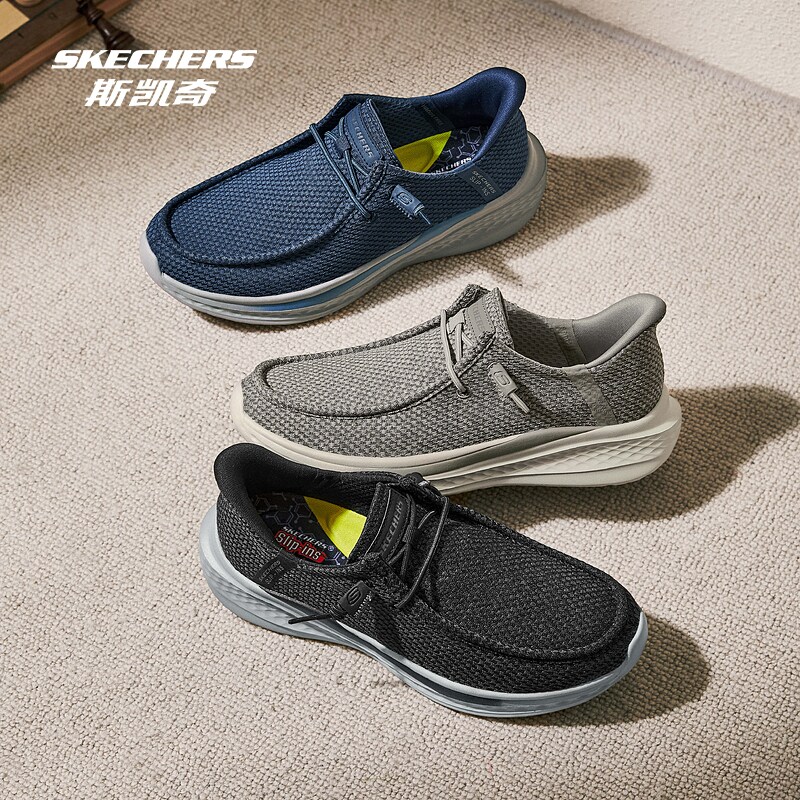 斯凯奇闪穿鞋新品男士一脚蹬软底休闲鞋舒适时尚运动鞋