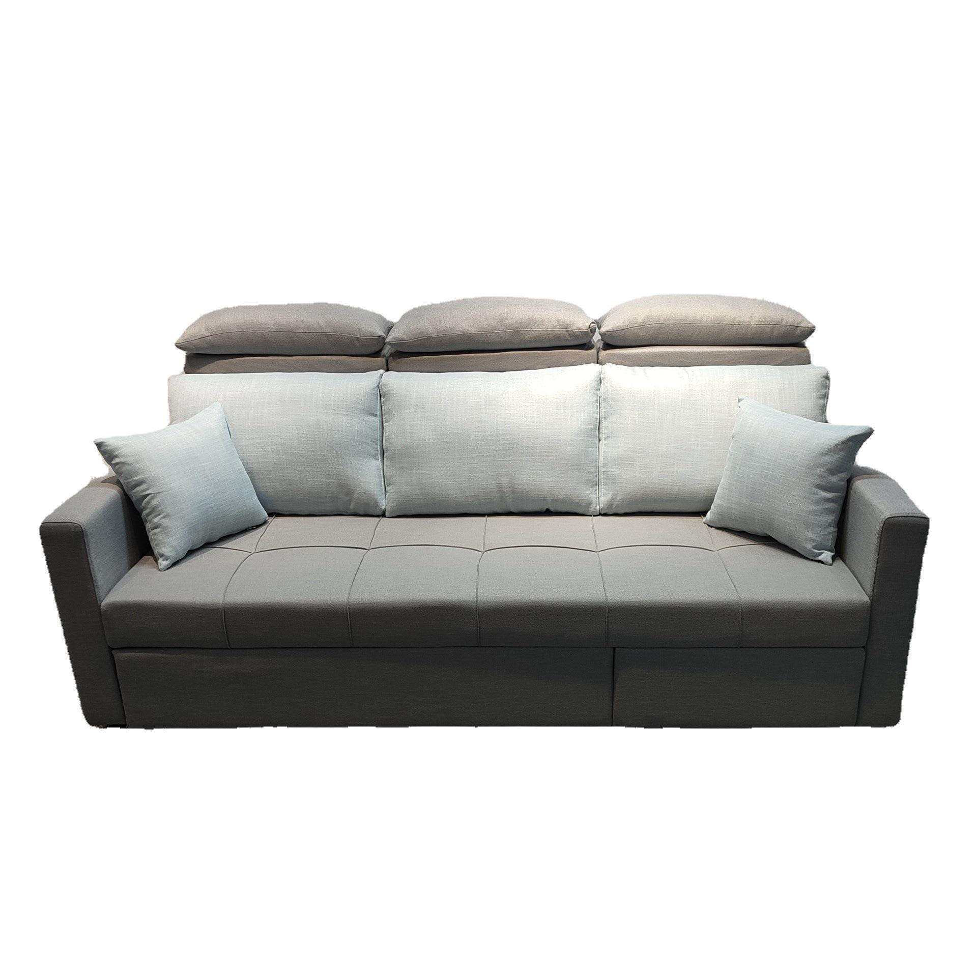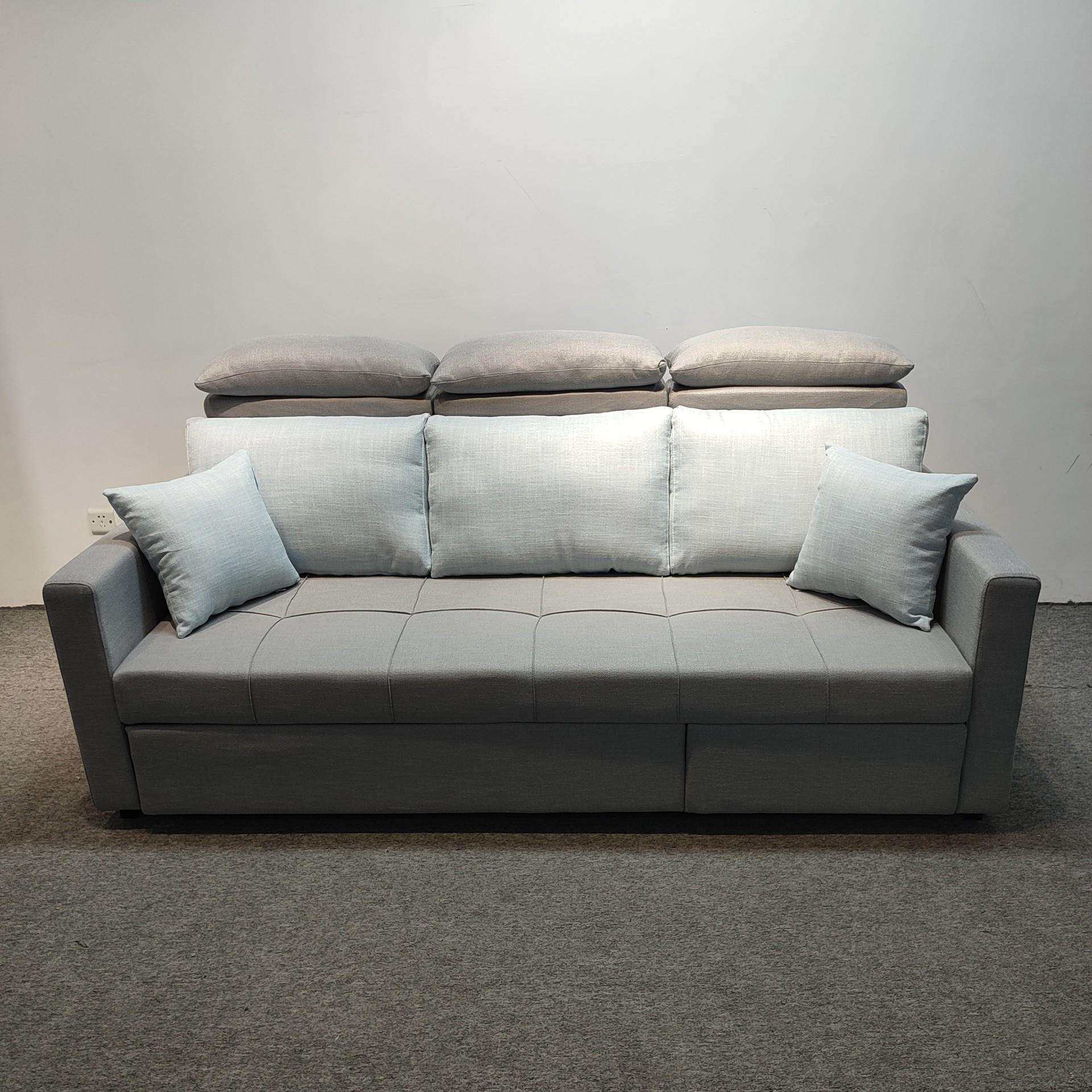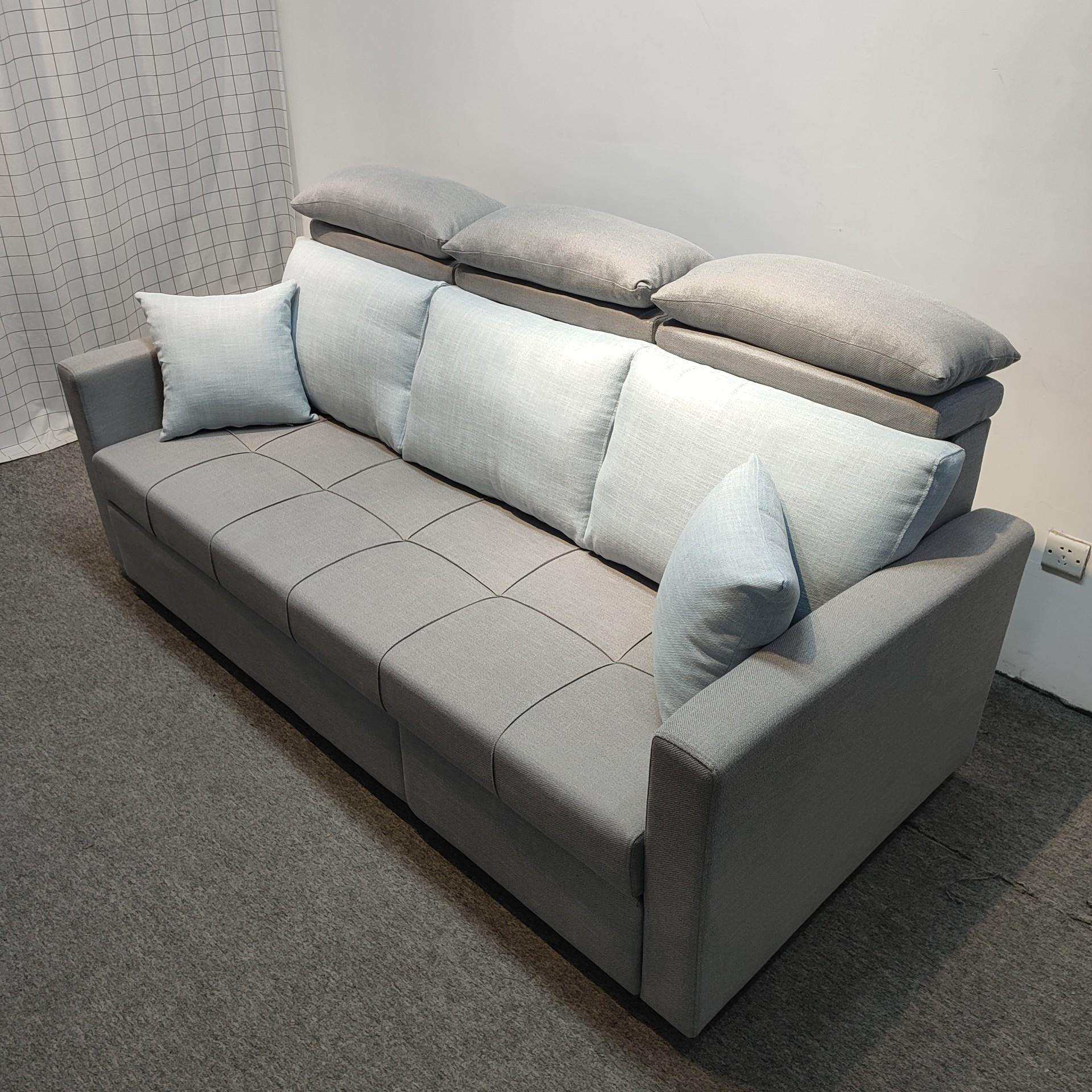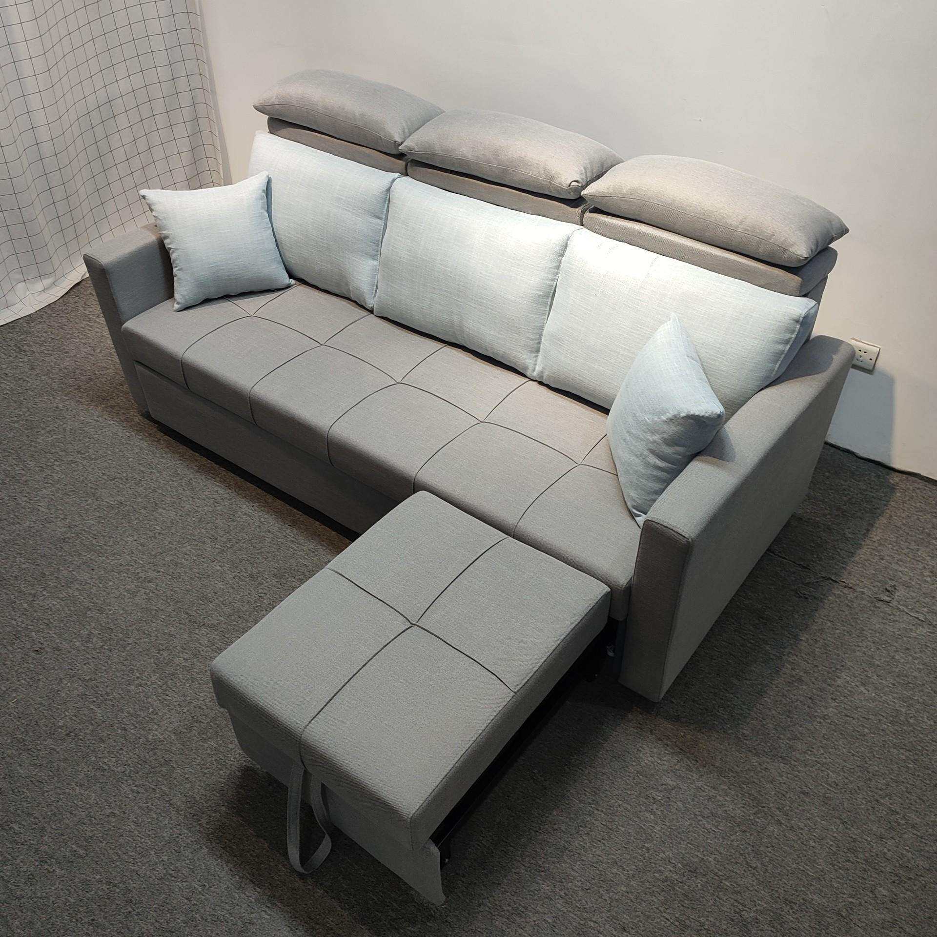 浅灰色简约棉麻布艺沙发小户型客厅卧室隐形贵妃双拖床折叠沙发床
