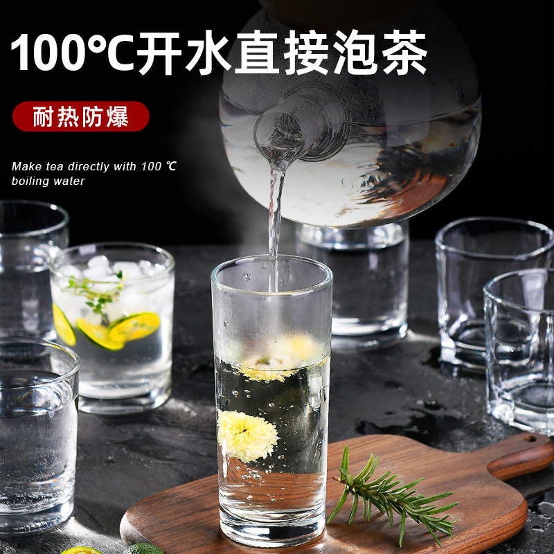 家用耐热玻璃杯子套装喝水杯茶杯牛奶杯啤酒杯透明耐热6只家用
