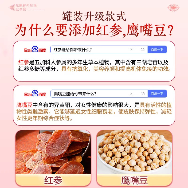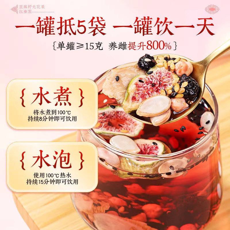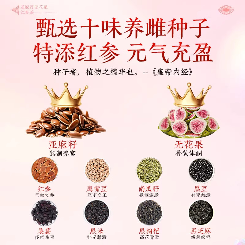 亚麻籽无花果干黄体酮养雌茶红参黑豆黑枸杞种子循环调理养生茶
