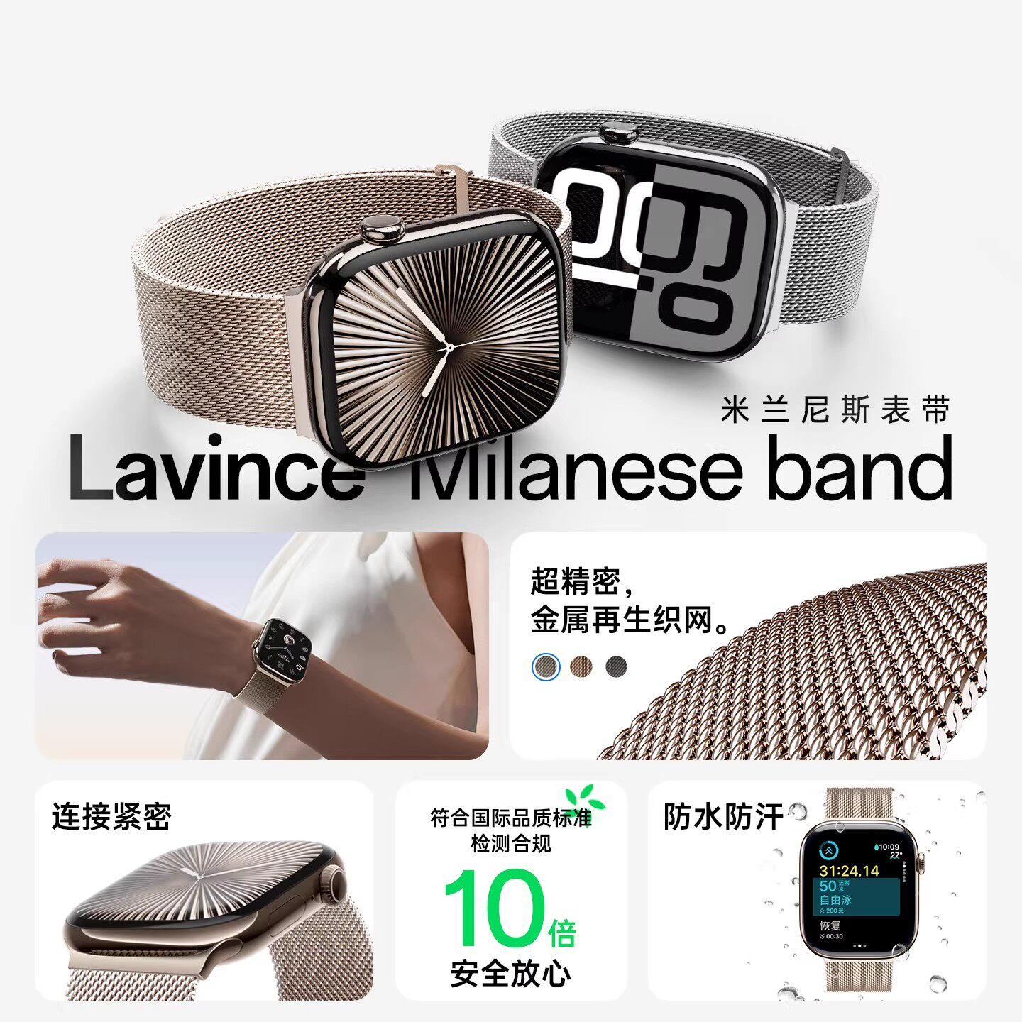 原封正品】适用苹果手表新款iwatch11米兰尼斯表带韩淼正品s10/ultra3/2男女款钛金属腕带applewatchs9/8/SE3