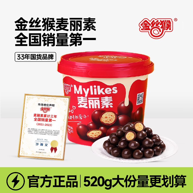 金丝猴麦丽素520g桶装巧克力怀旧零食麦芽脆心代可可脂健康童年