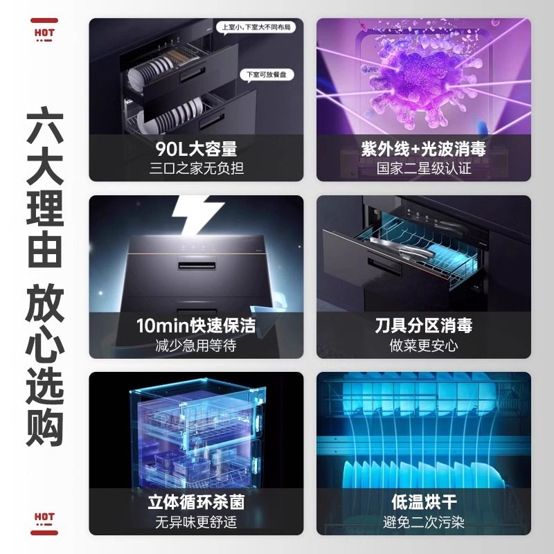 苏泊尔303S嵌入式餐具消毒柜厨房家用消毒碗柜智能小型烘干机二星