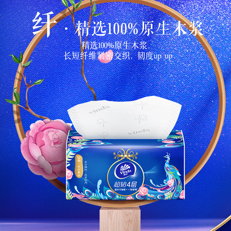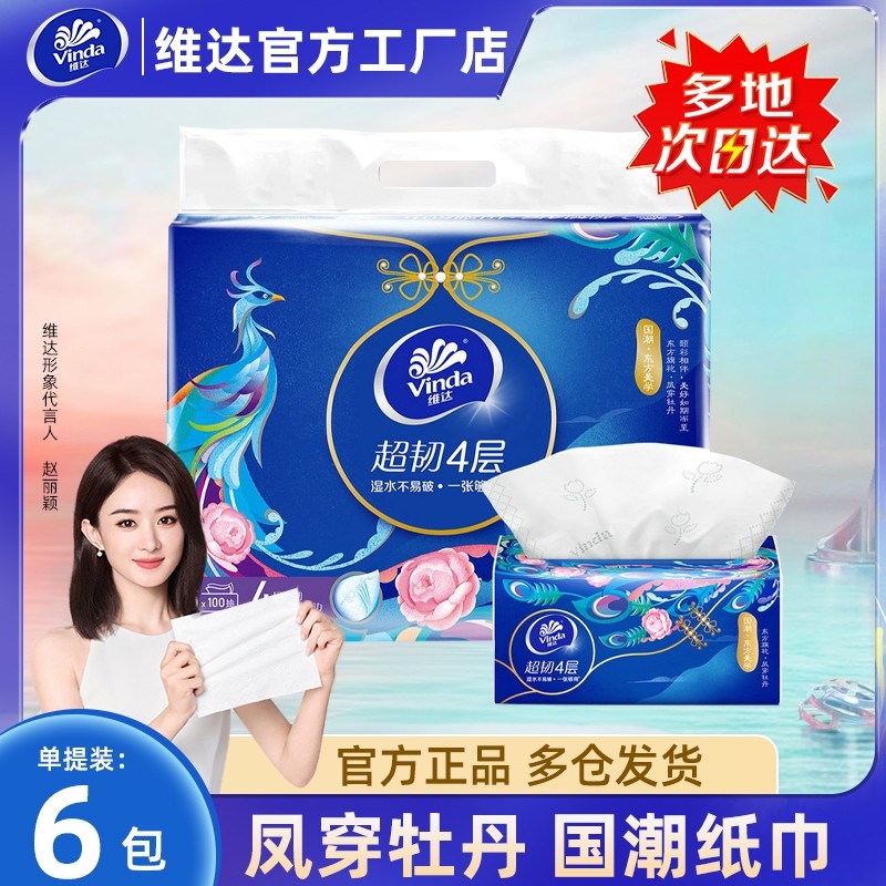 维达超韧抽纸国潮风4层100抽6包提装家用实惠装餐巾面巾纸可擦手
