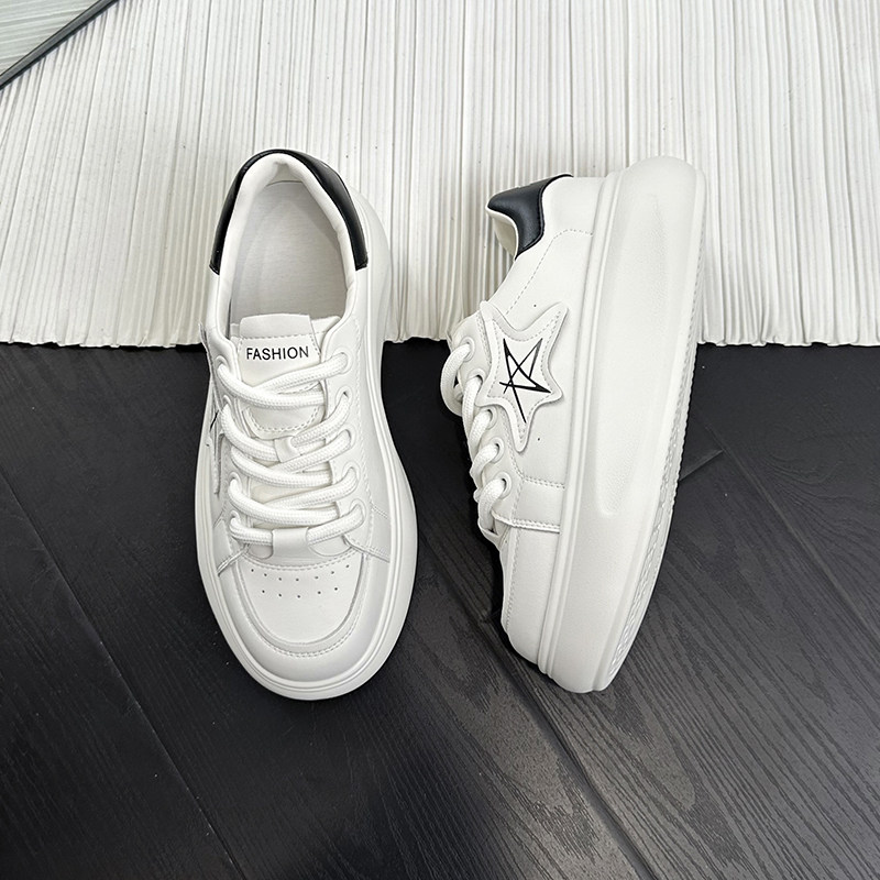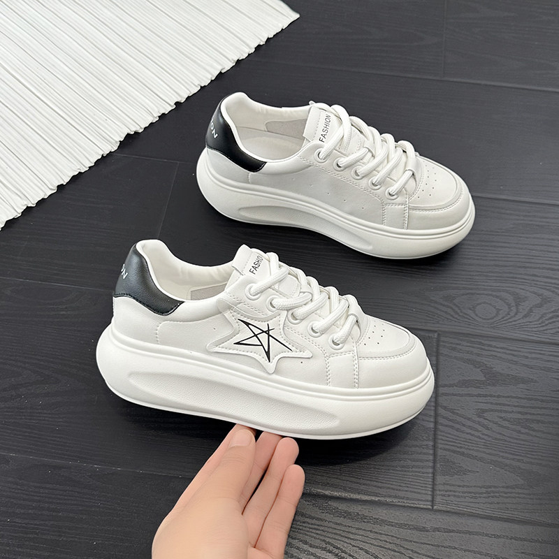 小个子厚底松糕运动鞋2025秋百搭休闲星星板鞋内增高小白鞋女6CM