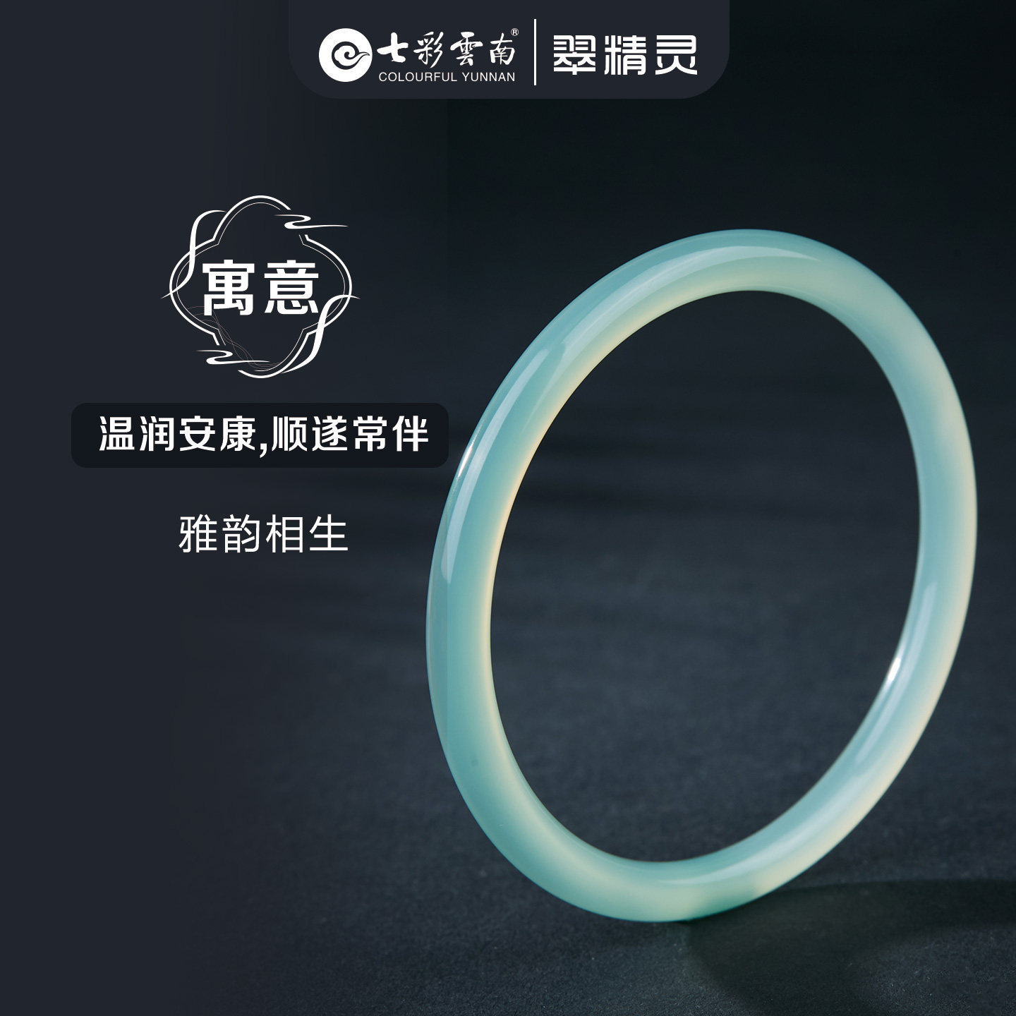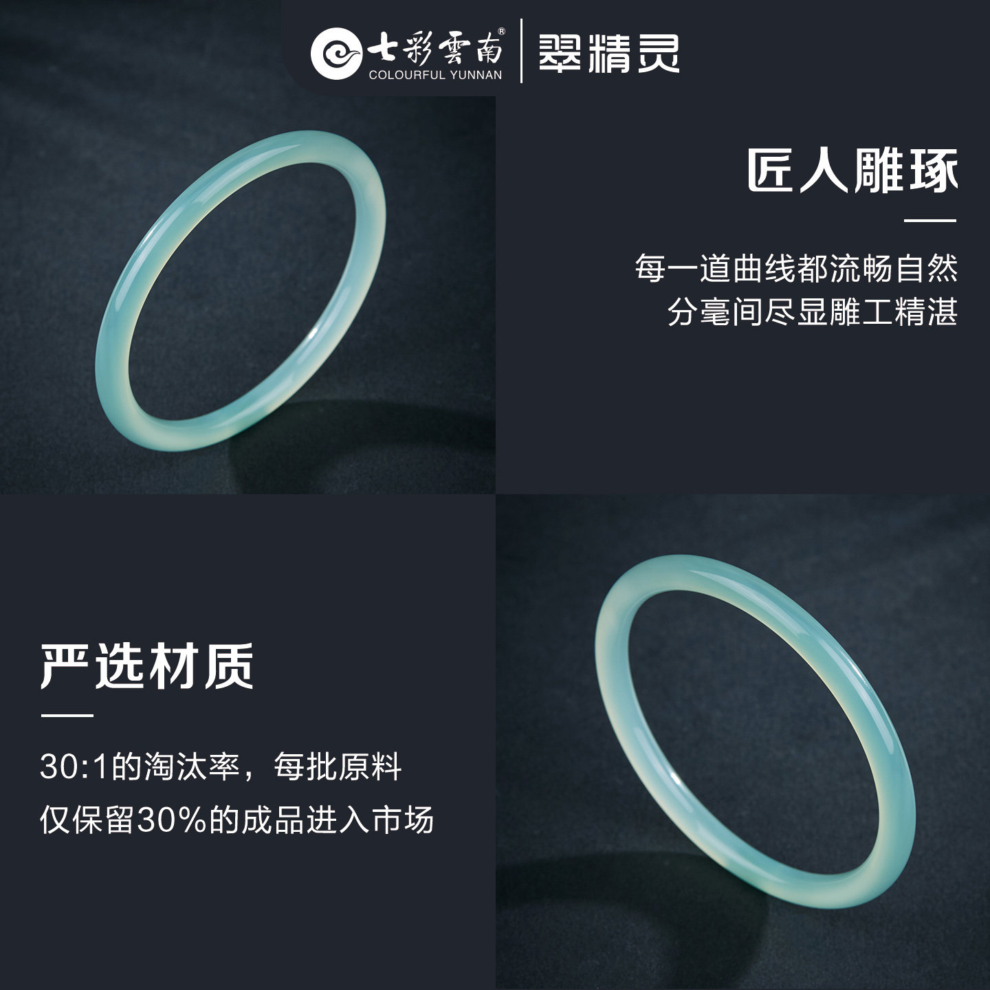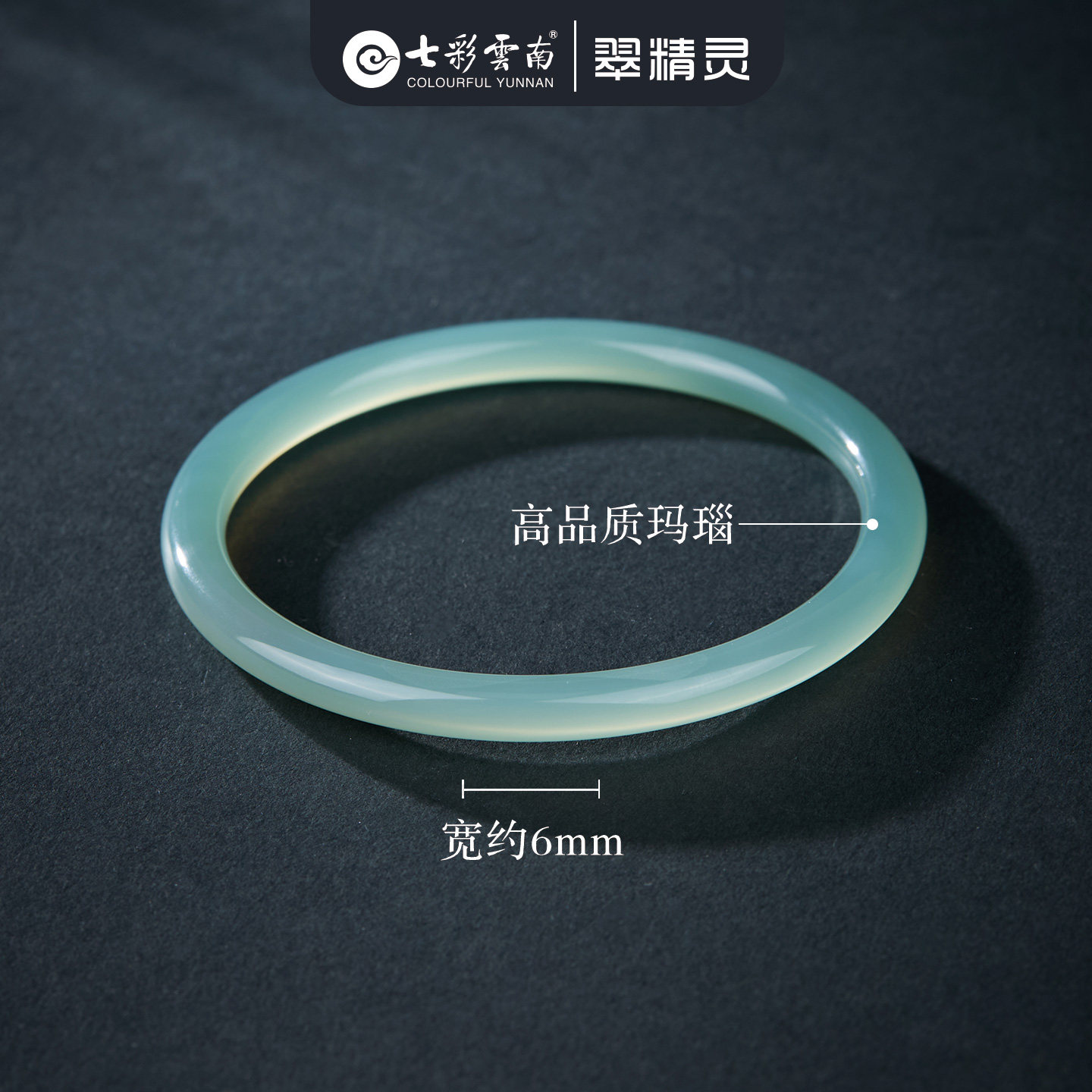 七彩云南天然玛瑙玉髓手镯冰透叮当镯浅绿冰种女款细条圆镯礼物