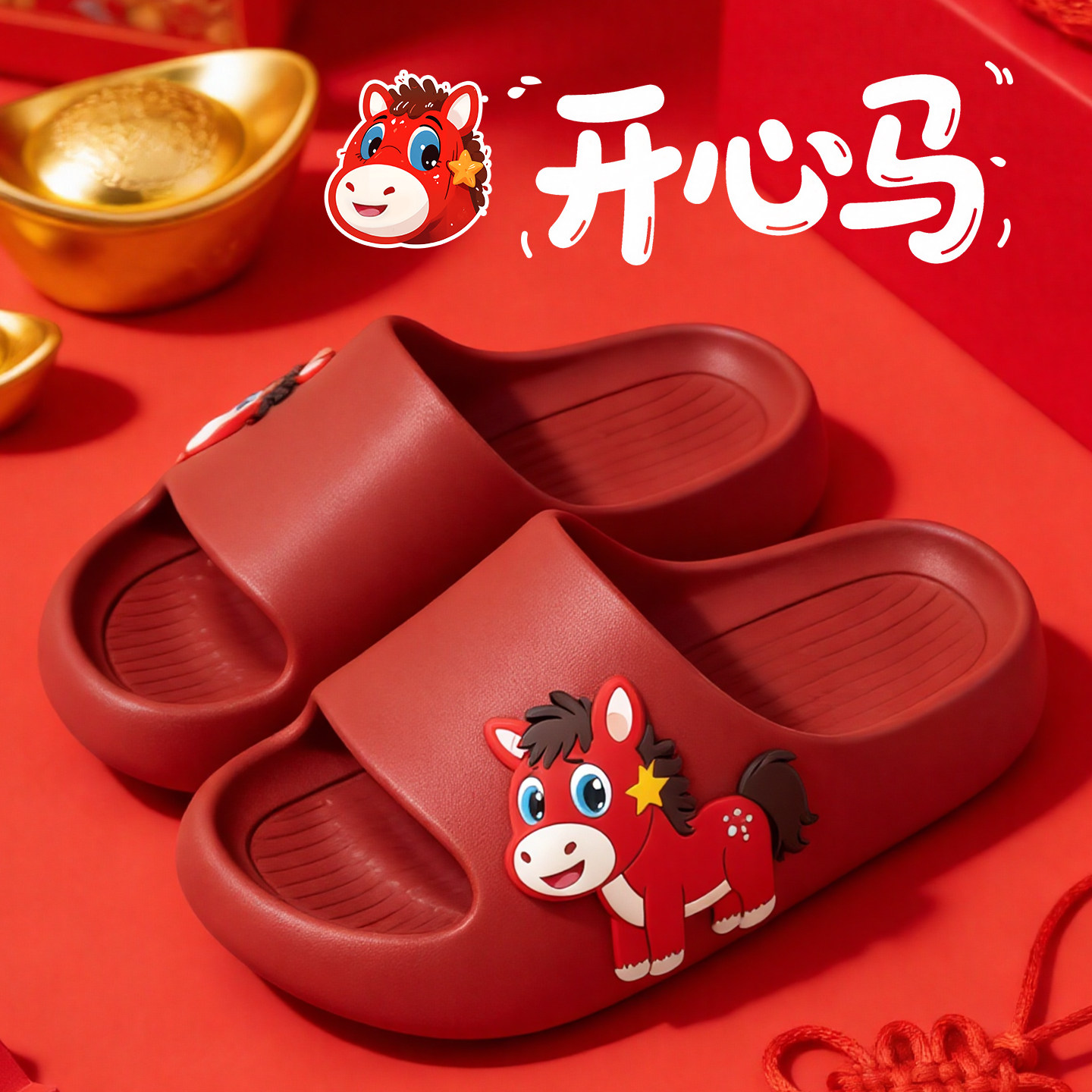 马年开心马拖鞋女男儿童2026新款居家用情绪价值上班哭哭马情侣拖