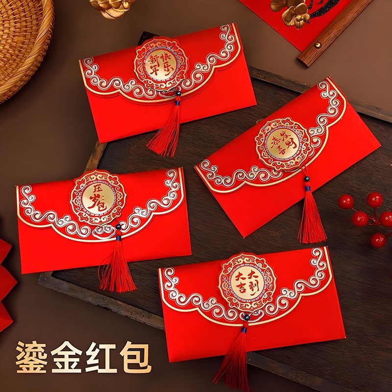 2026新年红包高档通用利是混搭混装福贺寿组合装红包流苏中式横版