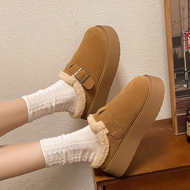 厚底勃肯鞋女2025新款冬季女鞋加绒半拖一脚蹬穆勒鞋子增高博肯鞋