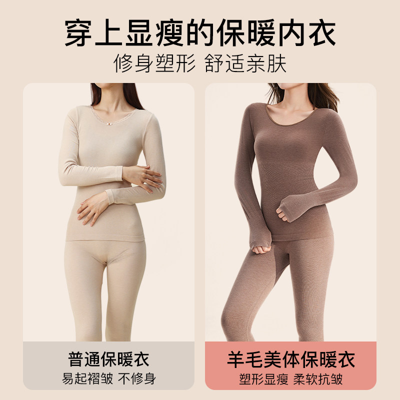 修容保暖内衣女高弹收腹束腰巨显瘦内搭打底羊毛发热美体套装肤色