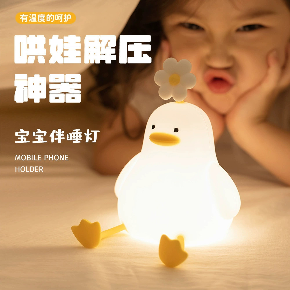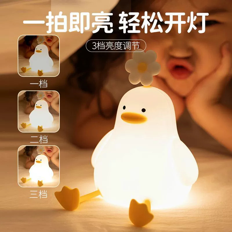 硅胶小夜灯卧室床头感应氛围睡眠儿童婴儿喂奶女生礼物花鸭拍拍灯
