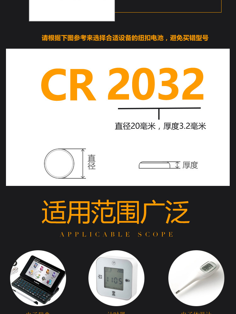 纽扣电池手表遥控器玩具车钥匙专用CR2032/CR2025/CR2016