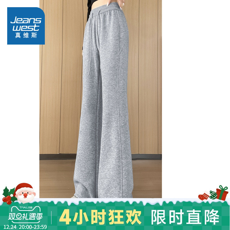 杨幂同款SIINSIIN2025新款白色加绒直筒裤女冬季厚显瘦运动小个子