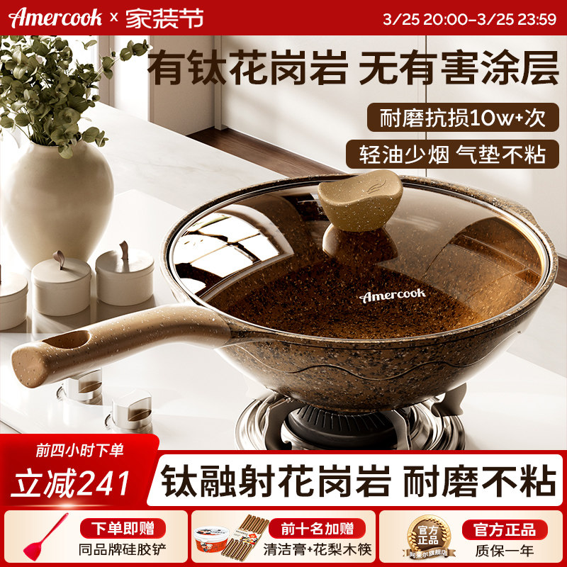 amercook阿尔菲塔花岗岩钛不粘锅家用炒菜锅平底炒锅燃气灶电磁炉