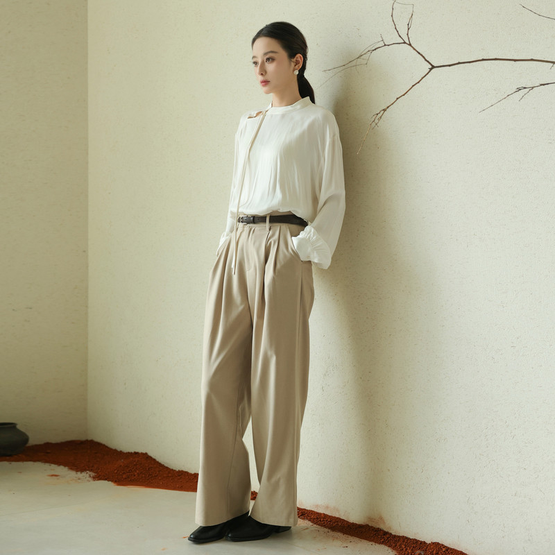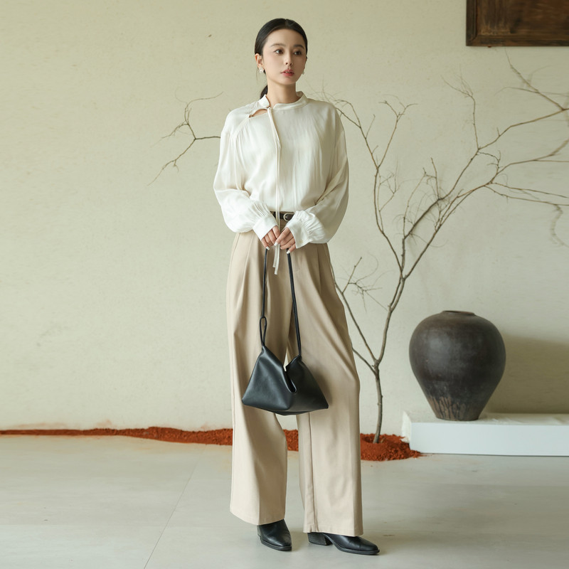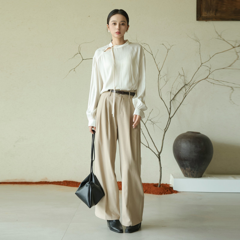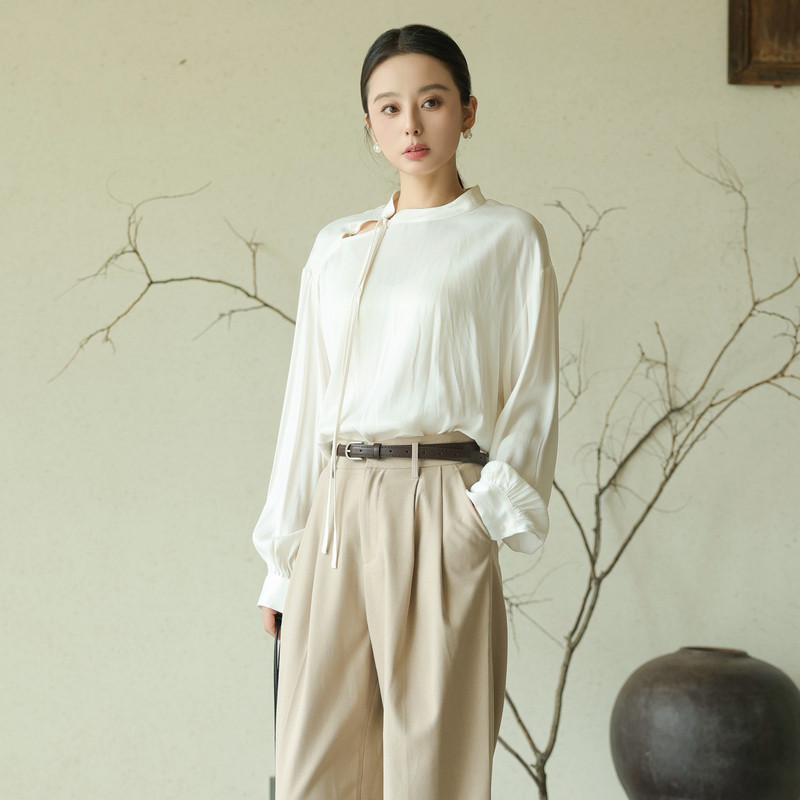 黑标BAIZHUO秋季新款新中式通勤简约百搭镂空系带小衫AZ43XS412