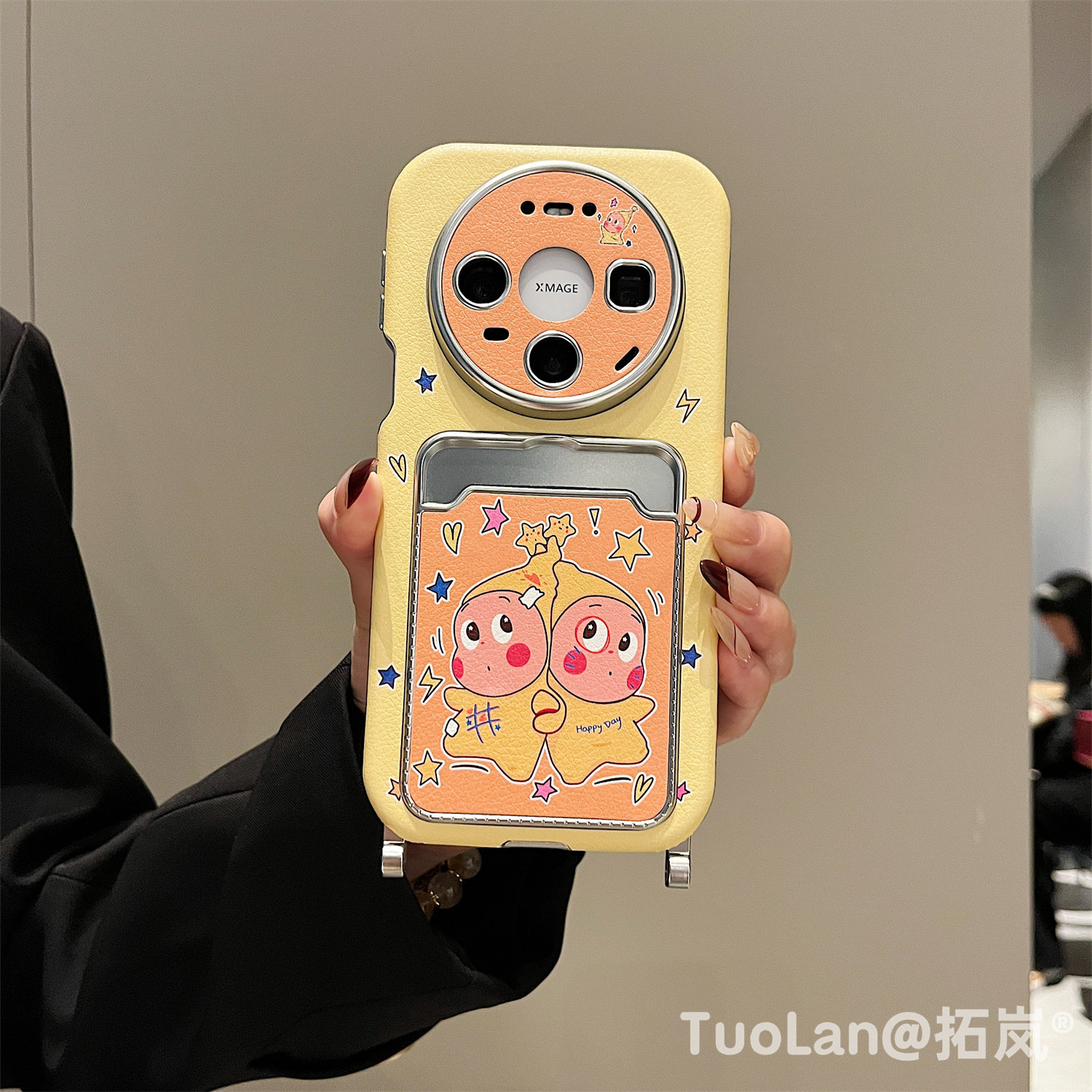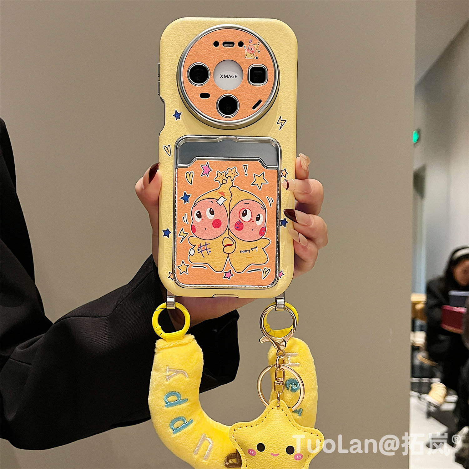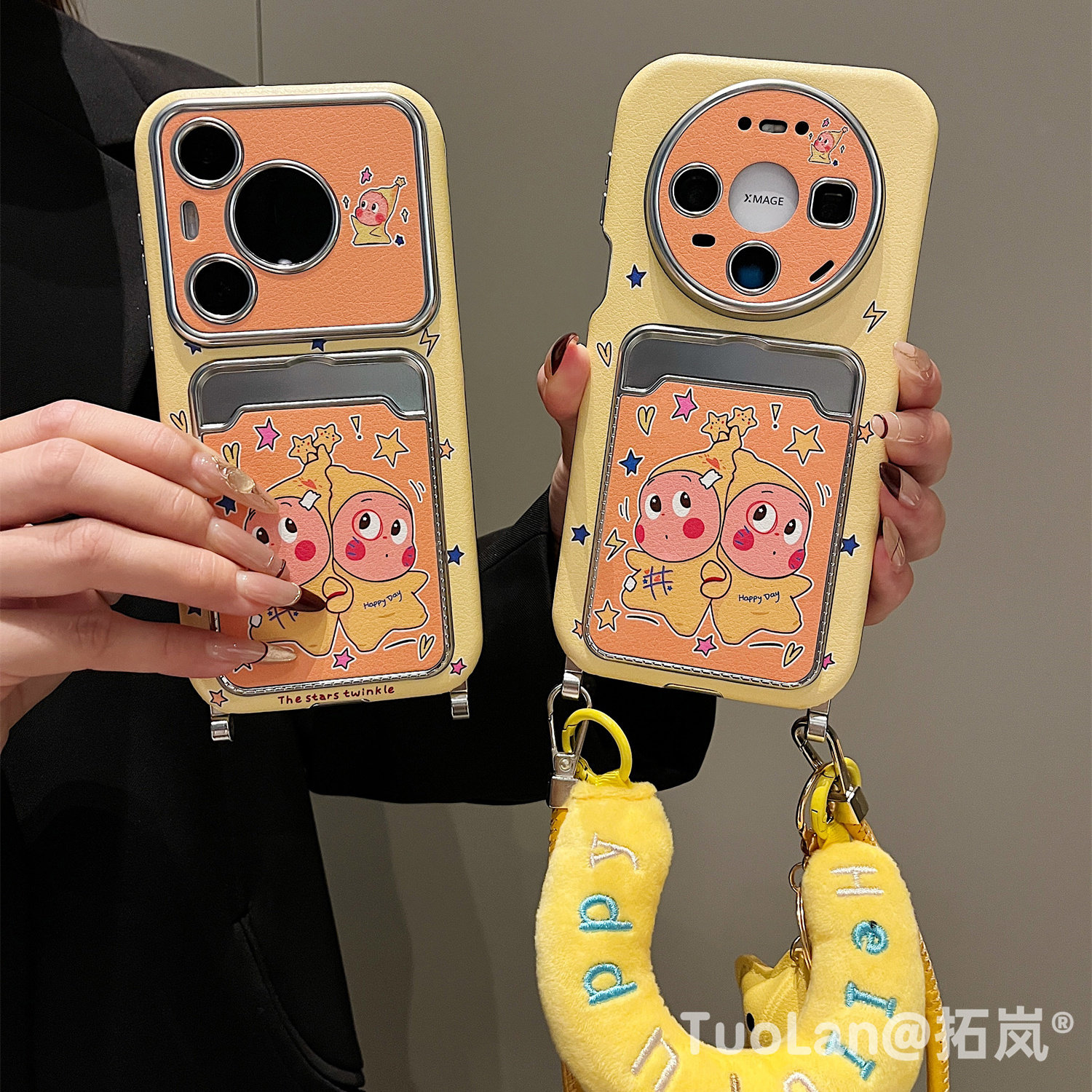 拓岚 适用华为mate80promax斜跨手机壳可爱星星人皮质卡包毛绒C腕带mate80/70/60pro挂绳pura70/80pro网红女