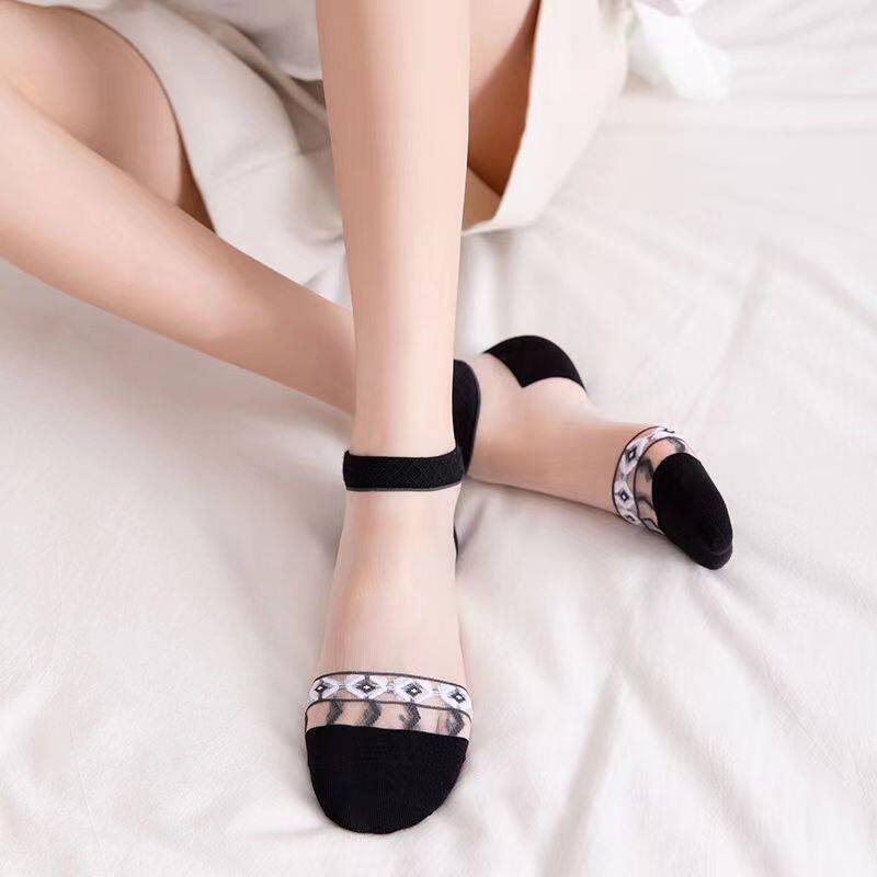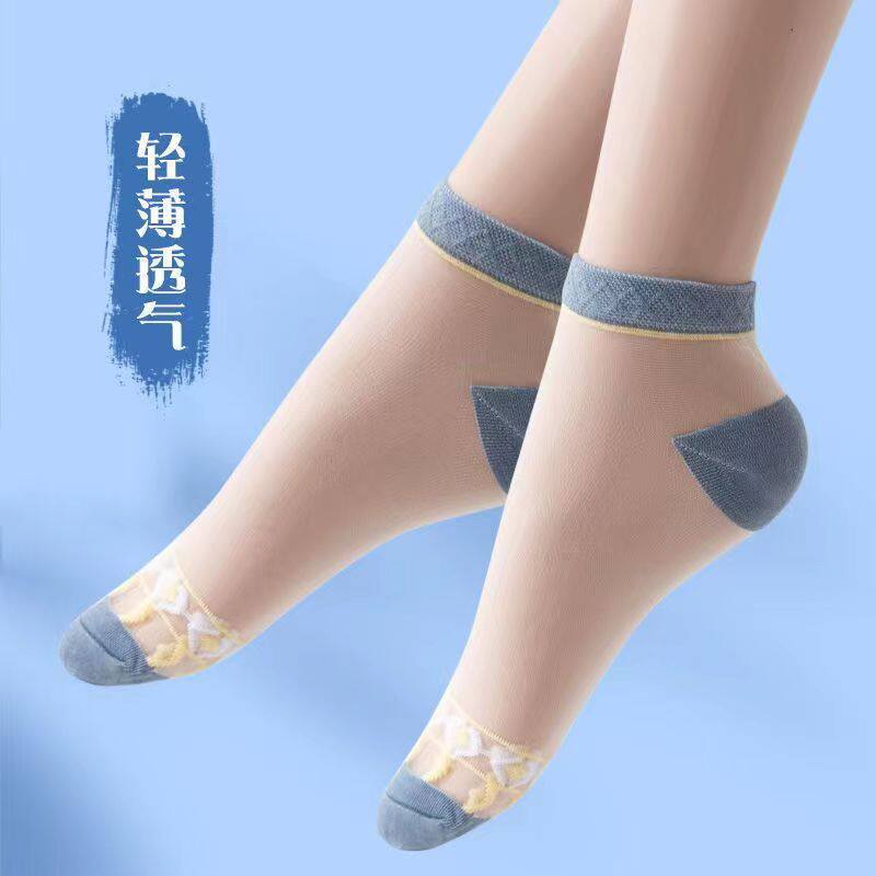 水晶丝袜女短玻璃丝袜子防勾丝夏季短筒袜防滑超薄款浅口短袜时尚