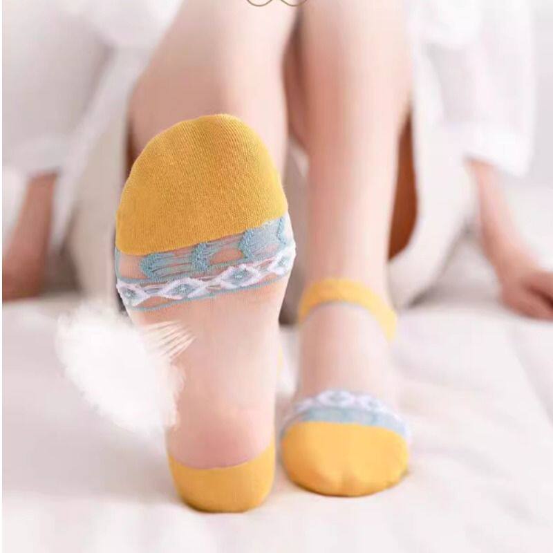 夏季薄款女士袜子纯棉底水晶玻璃冰丝透气蕾丝花边短款浅口防勾丝