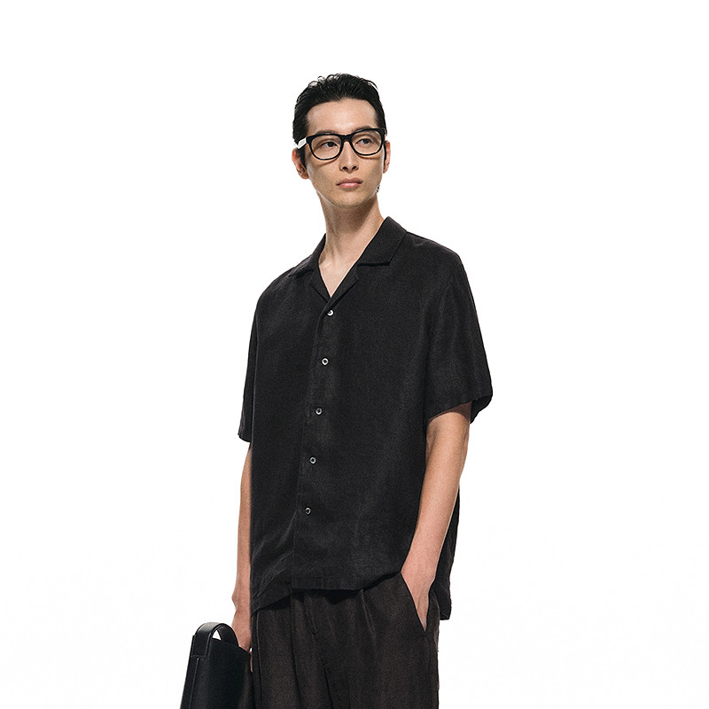 [黑支线]速写outlets奥莱男装25春夏季末折扣新品亚麻短袖衬衣