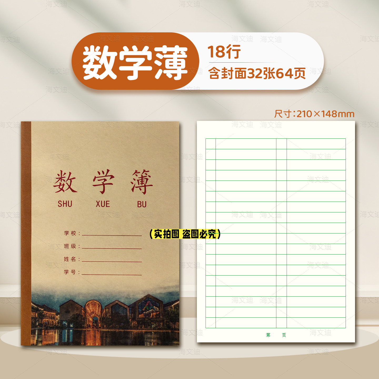 余杭区中小学生作业本杭州加厚护眼纸张包背牛皮本拼音田字格数学英语作文大方格薄笔记薄方格薄