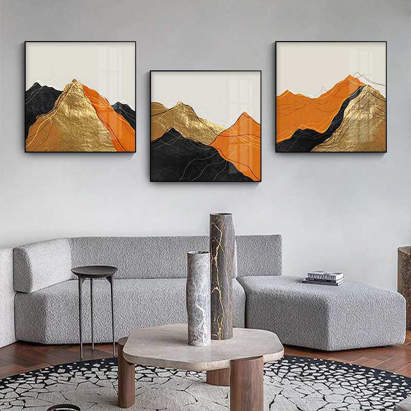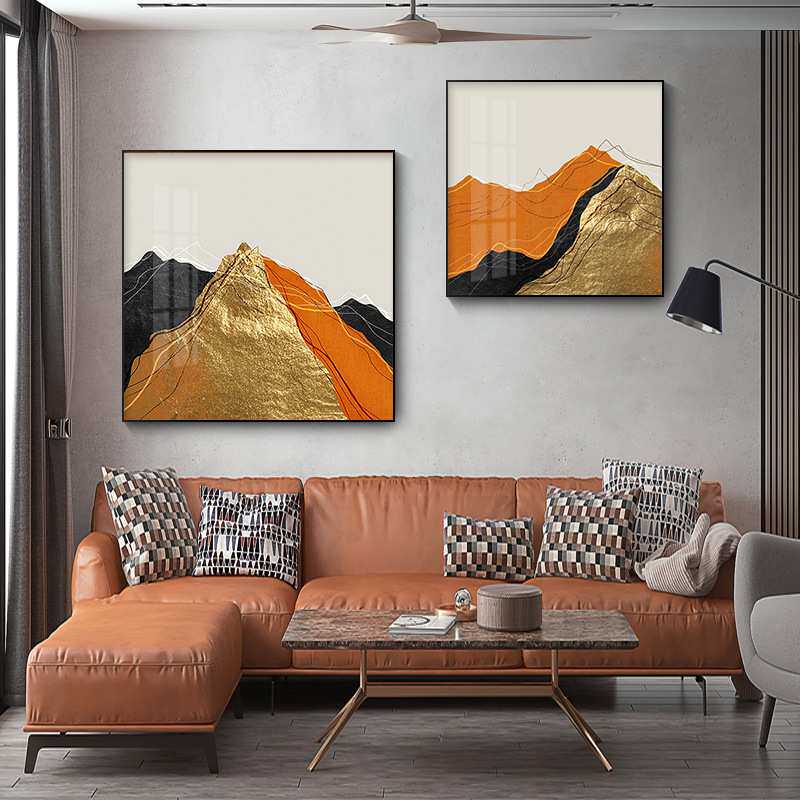 现代简约大气沙发后墙上客厅轻奢挂画橙色背靠金山装饰画餐厅壁画