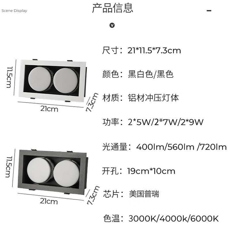 筒灯led天花灯嵌入式客厅双头斗胆灯服装店铺方形孔灯
