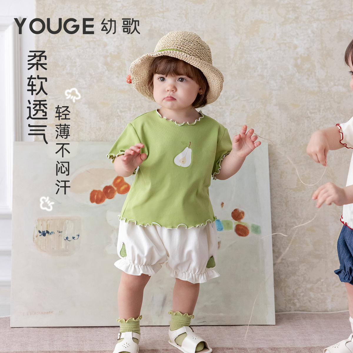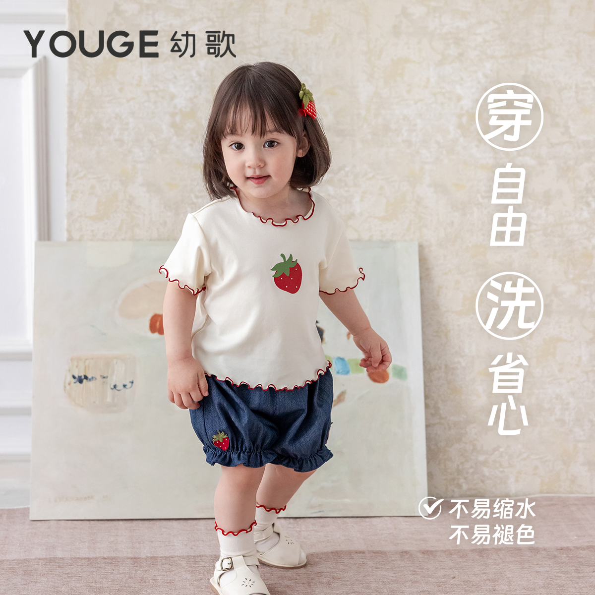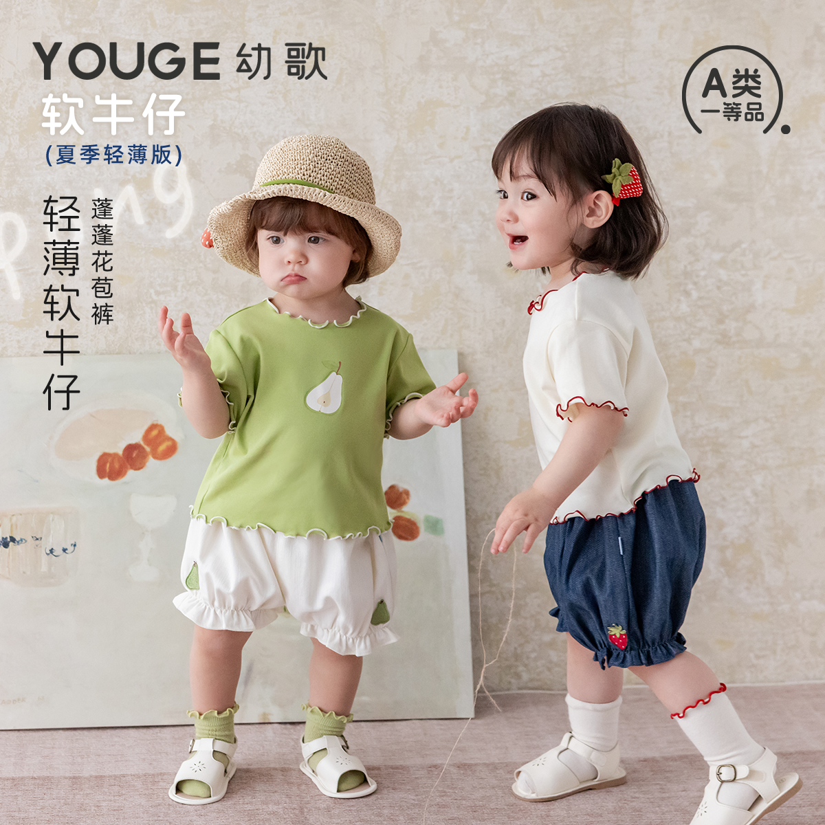YOUGE幼歌 婴幼儿夏季新款轻薄软牛仔透气花苞裤时尚宽松宝宝长裤