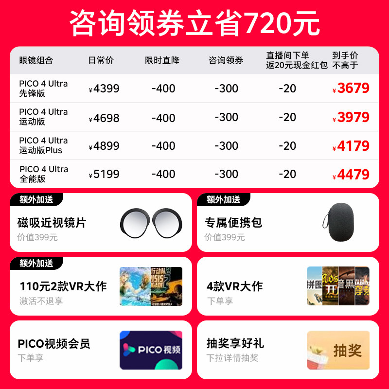 【下单立省700】PICO 4 Ultra VR眼镜一体机智能3d眼镜vr眼镜设备vr游戏眼镜设备一体机非quest