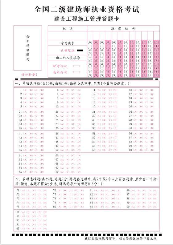 2022全国二级建造师答题卡二建考试工程管理与实务法规及相关知识
