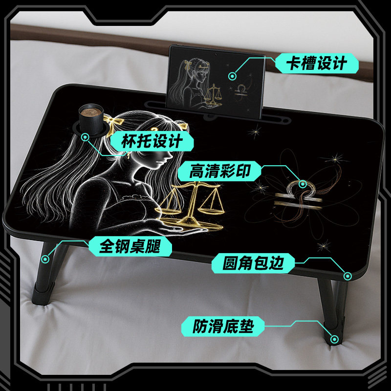 十二星座天秤座床上小桌子可折叠笔记本电脑桌膝上桌小学生学习桌学生宿舍上铺懒人神器卧室坐地小桌板电脑台