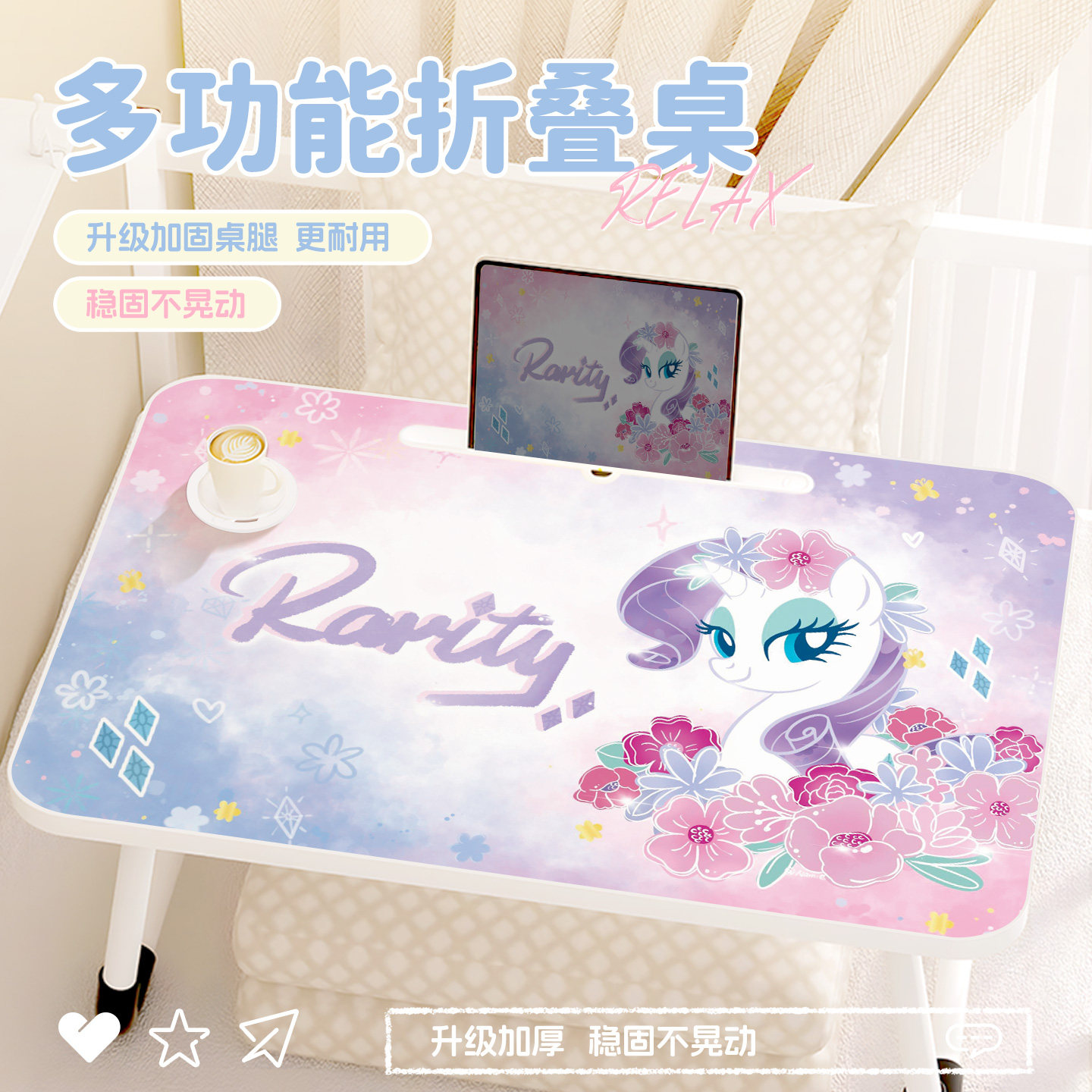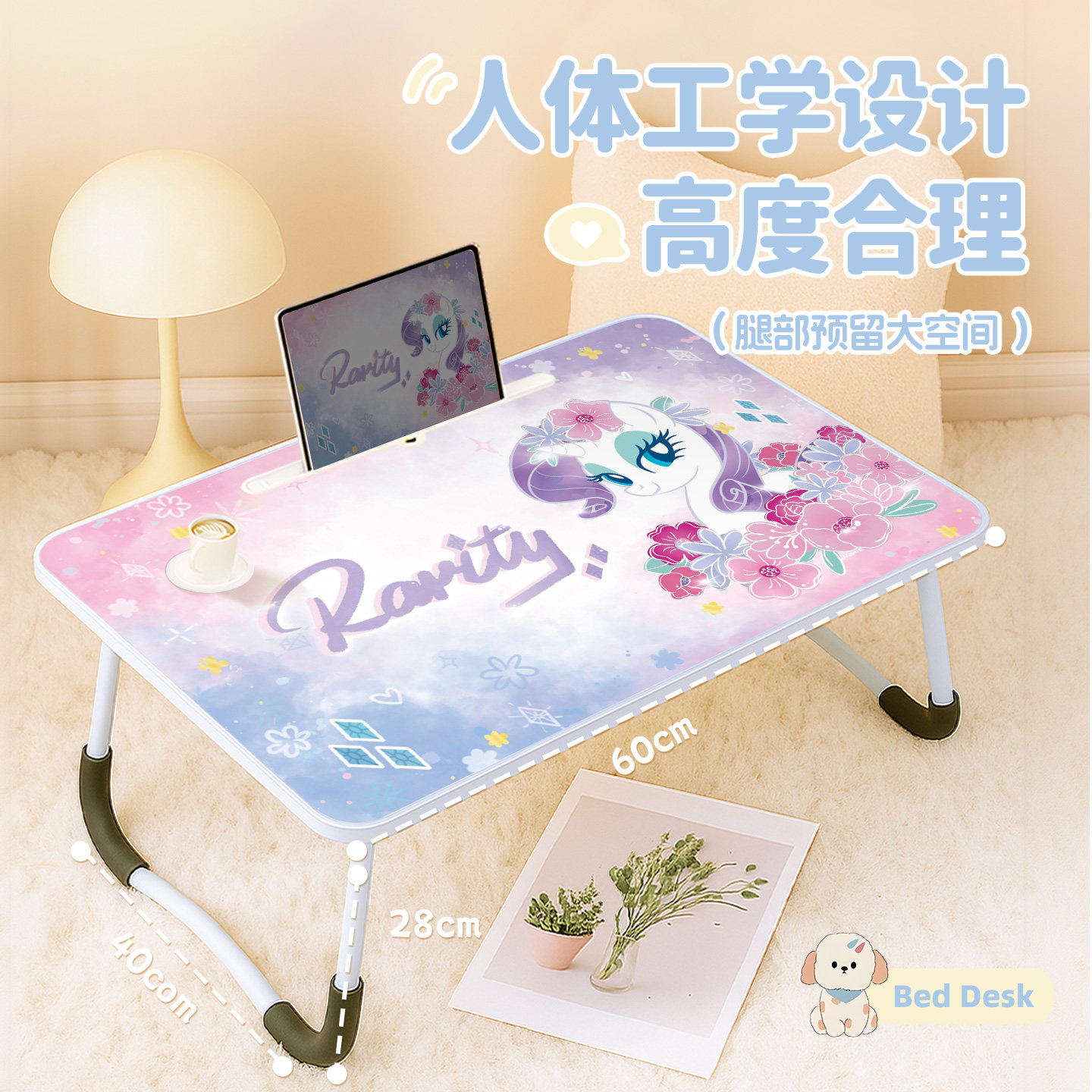小马宝莉床上小桌子笔记本电脑桌卧室飘窗床头桌懒人神器膝上桌学生宿舍可折叠儿童手账绘本学习桌家用小桌板