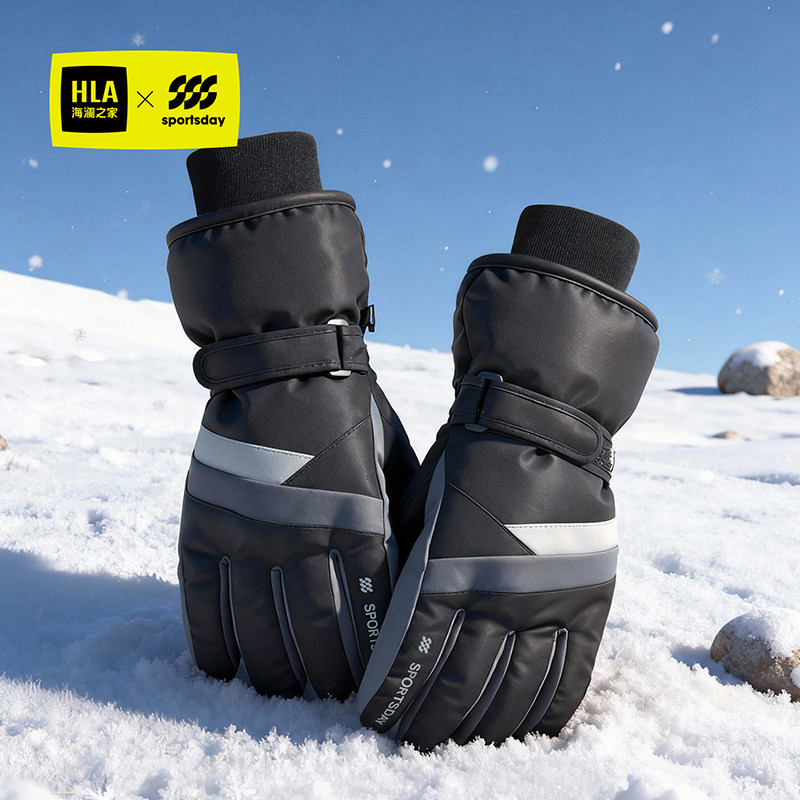 海澜之家男士潮流新款秋冬骑行摩托车加绒加厚保暖防滑滑雪手套潮