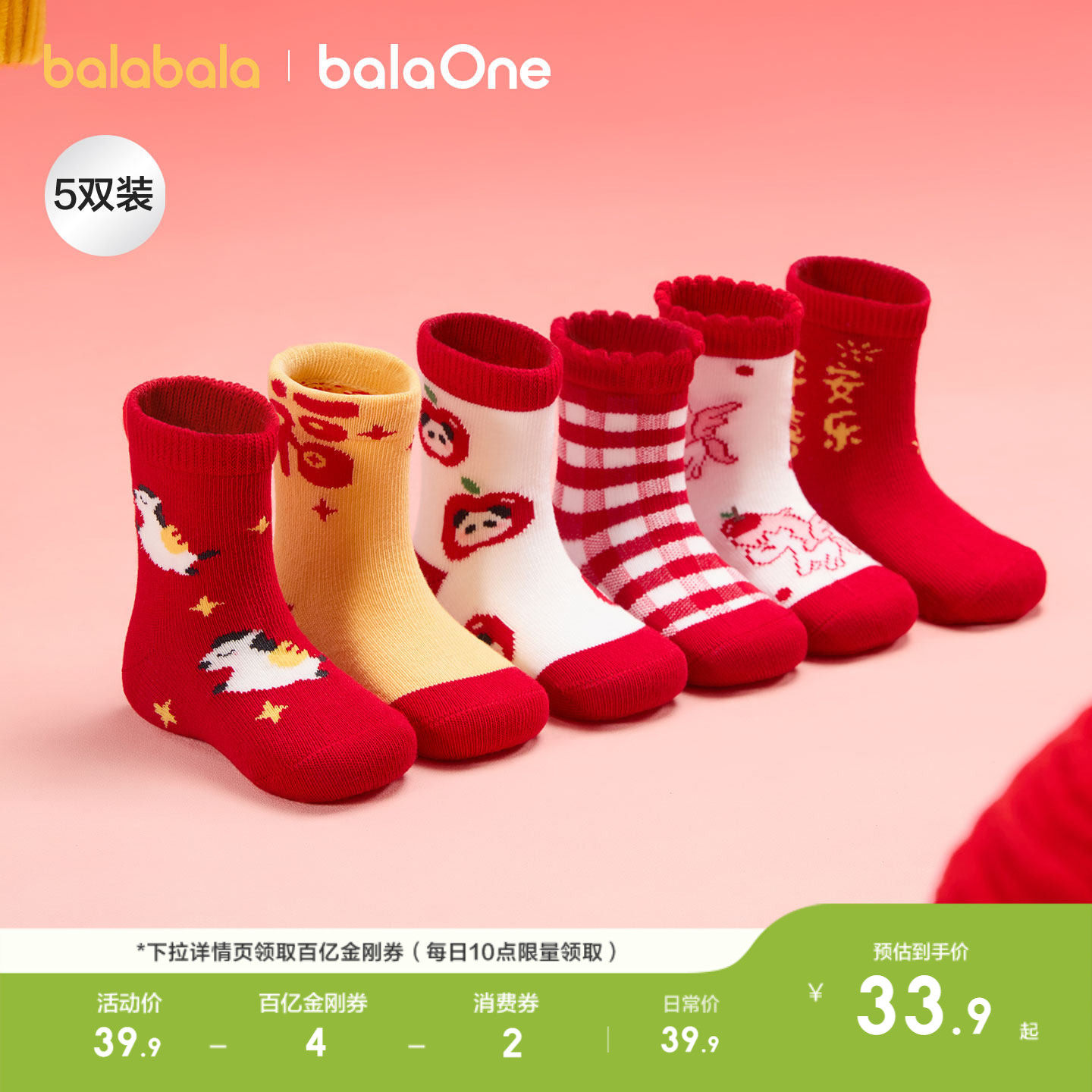 新年穿红袜走鸿运,五双装好换洗