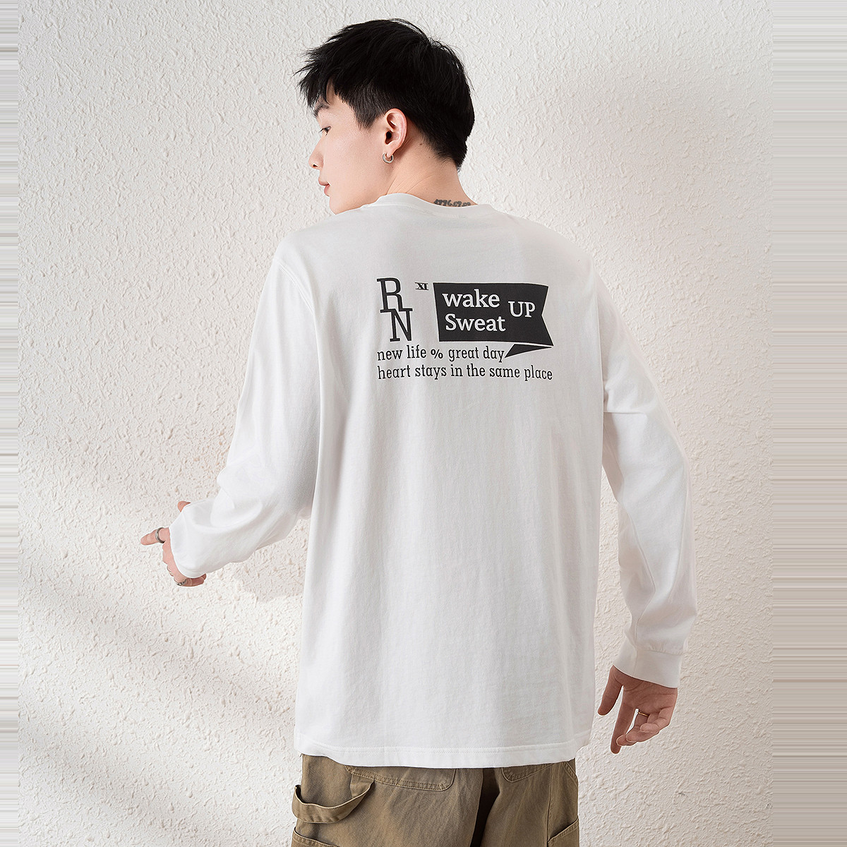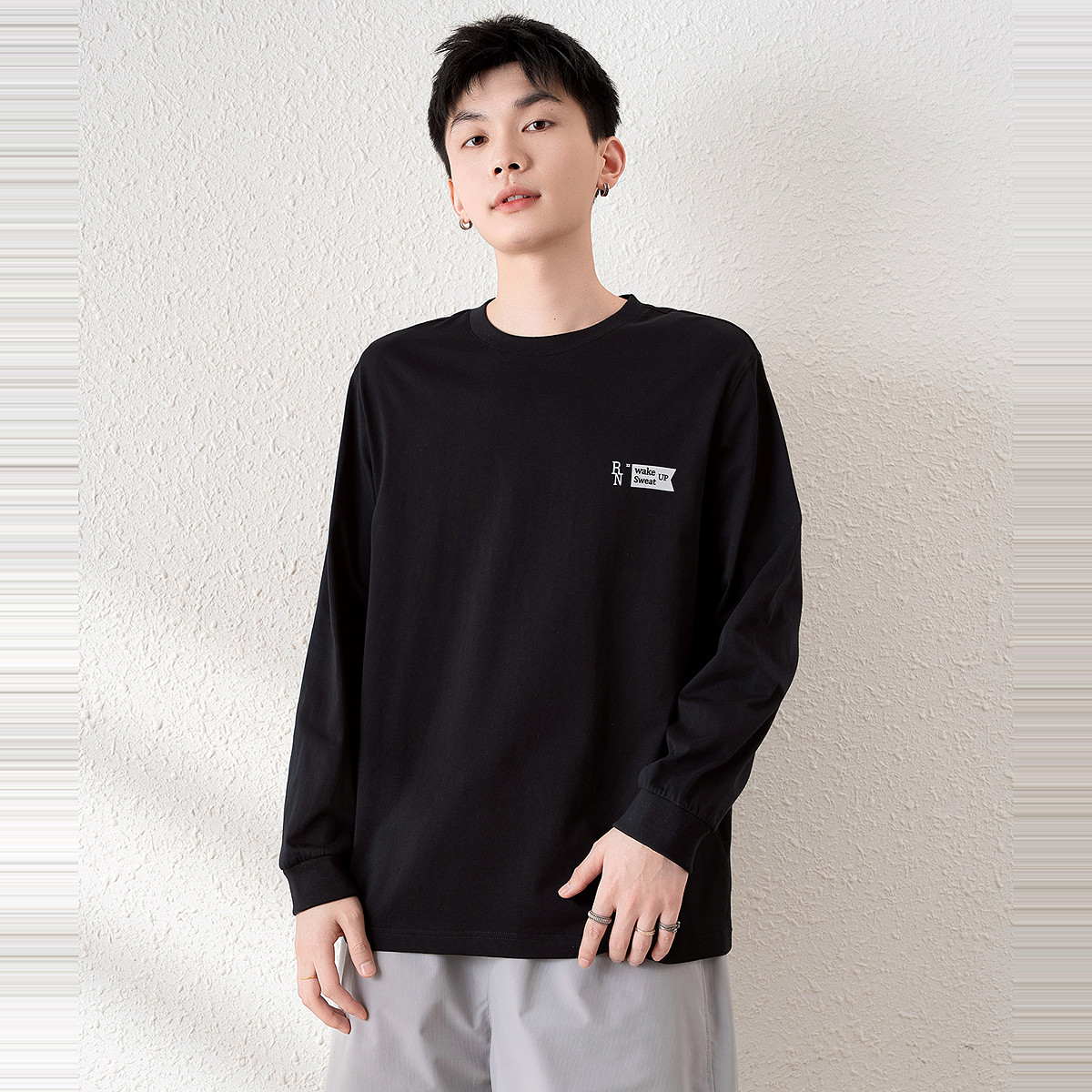 唐狮春秋新款长袖T恤男百搭宽松显瘦上衣男打底衫港风内搭潮TD
