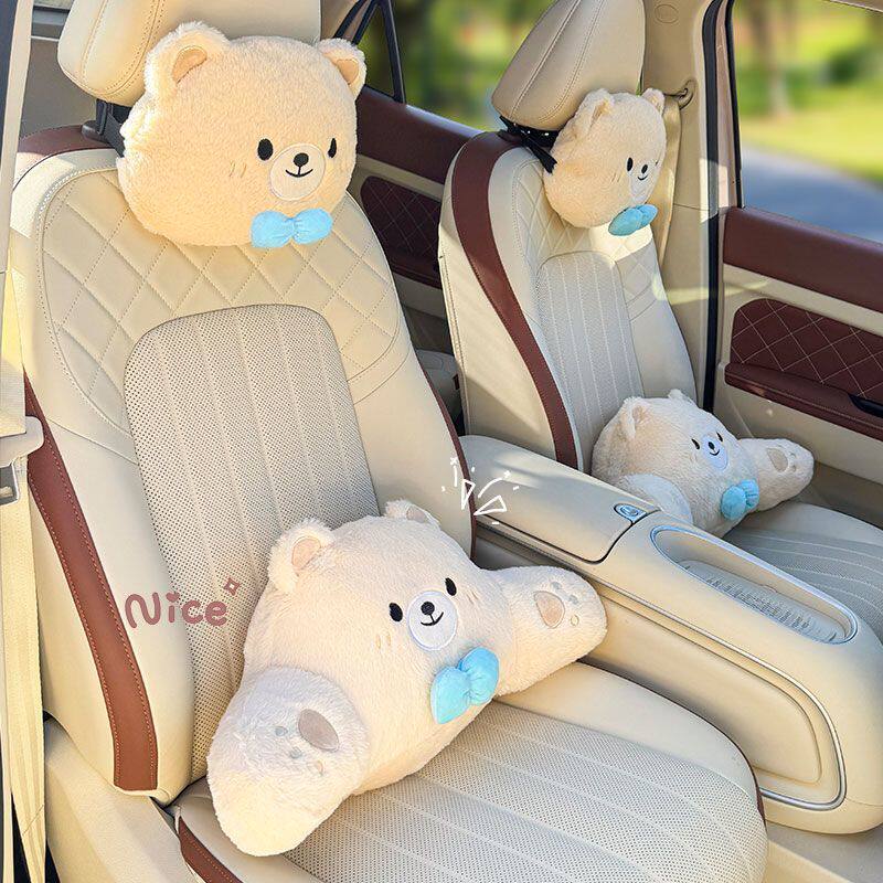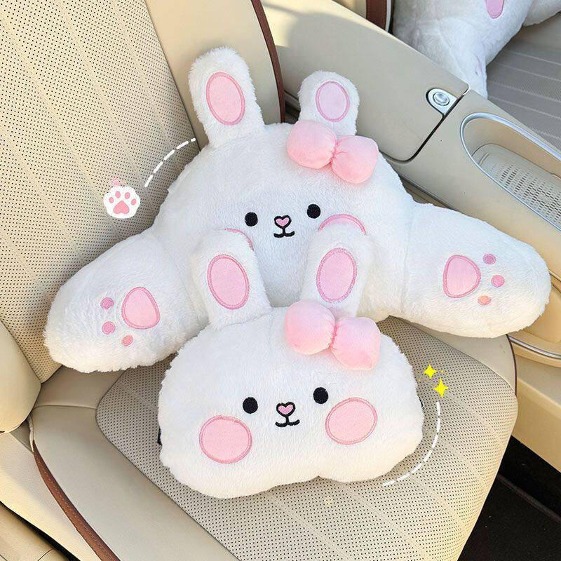 汽车头枕小熊小兔护颈四季通用靠枕毛绒卡通护腰可爱车载座椅腰靠
