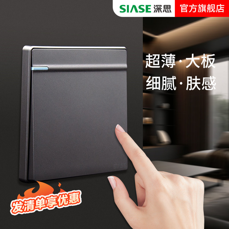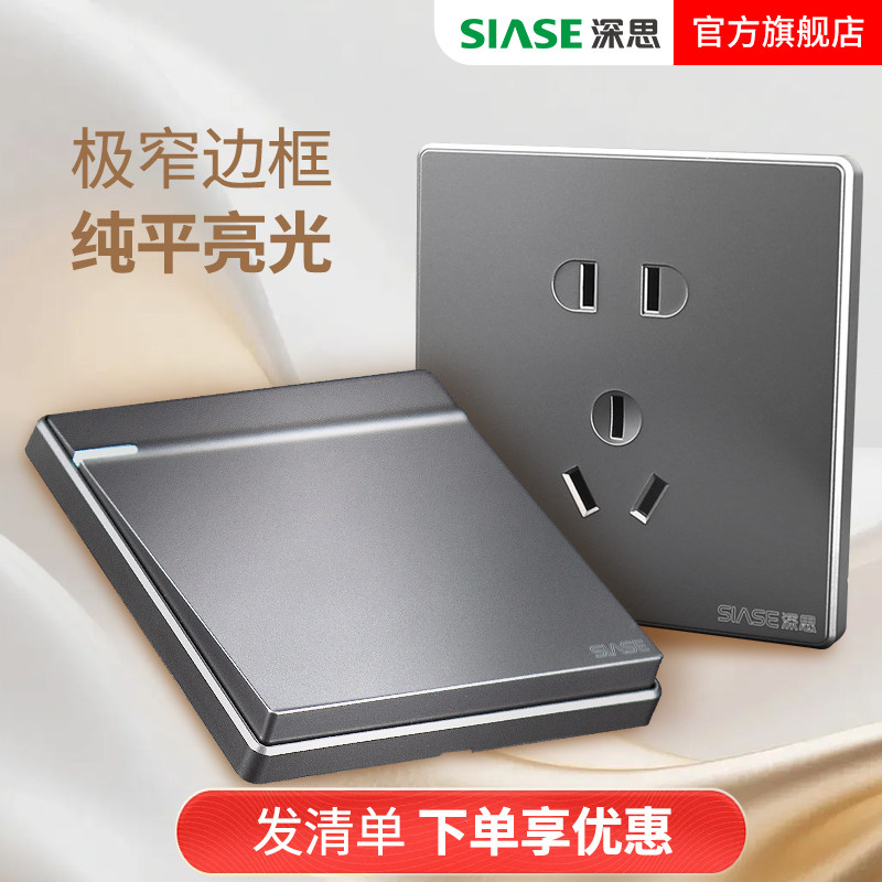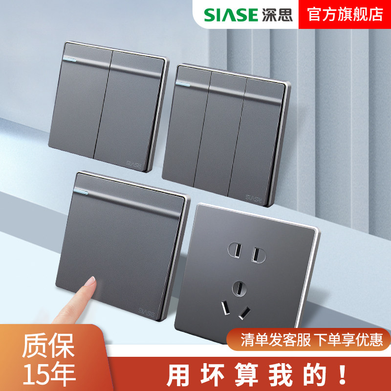 开关插座开关2W墙壁暗装五孔钢架一开5孔灰色四开超薄电视面板