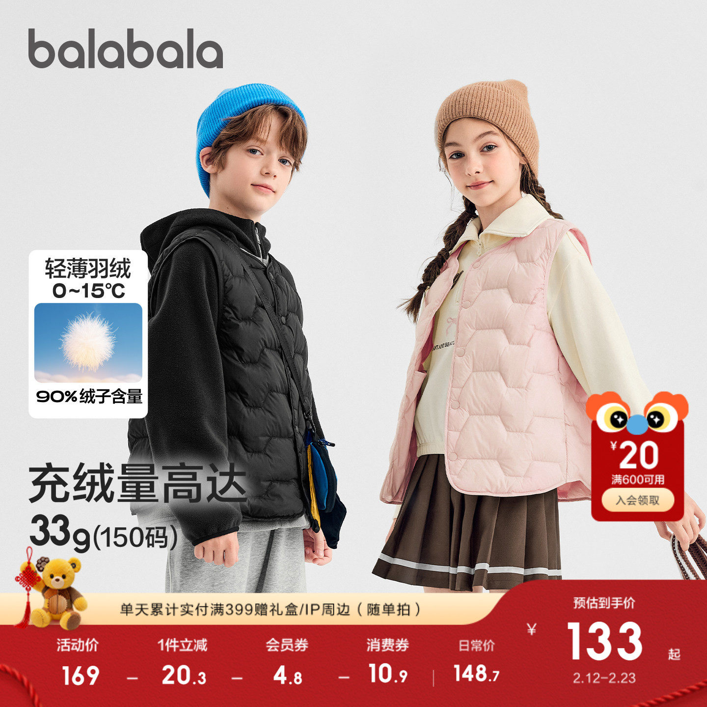 巴拉巴拉童装儿童羽绒马甲女童男童外穿新款2025冬装高充绒保暖潮