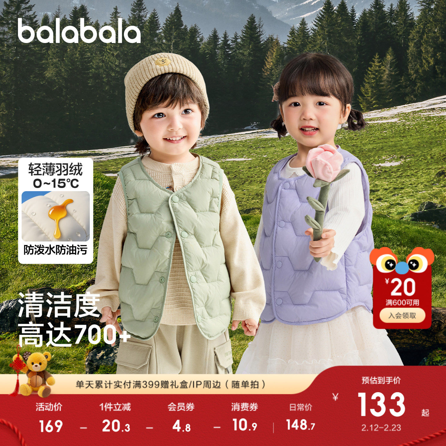 巴拉巴拉balaOne儿童羽绒马甲女童男童外套上衣新款童装2025秋冬