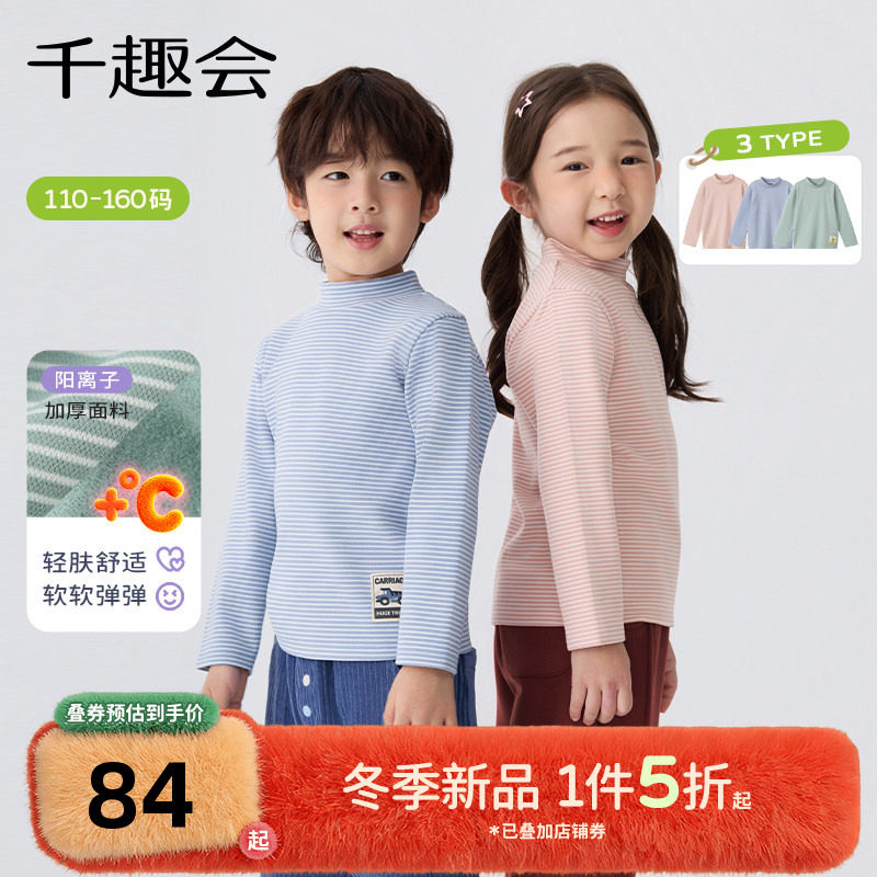 千趣会童装25年秋冬新品男女童加厚T恤阳离子面料贴布绣保暖内衣