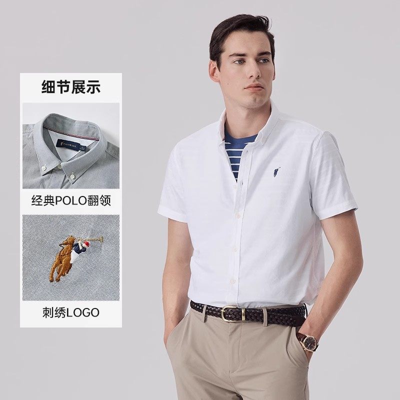 POLOWALK男士短袖衬衫夏季新款简约衬衣通勤翻领上衣男装时尚舒适