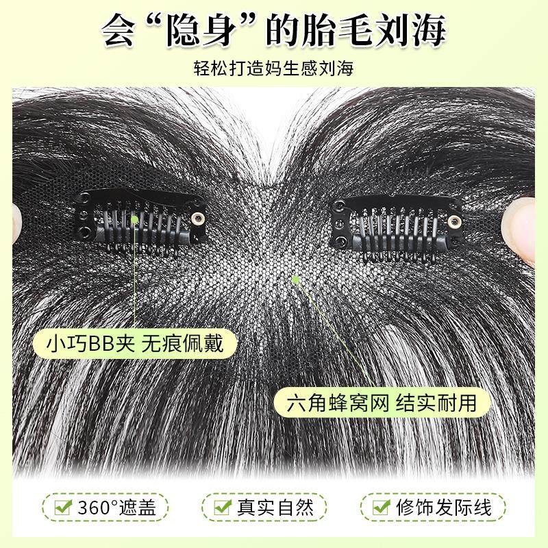 胎毛浏海假发片女全真发自然隐形遮前额发际线 线无痕八字浏海假