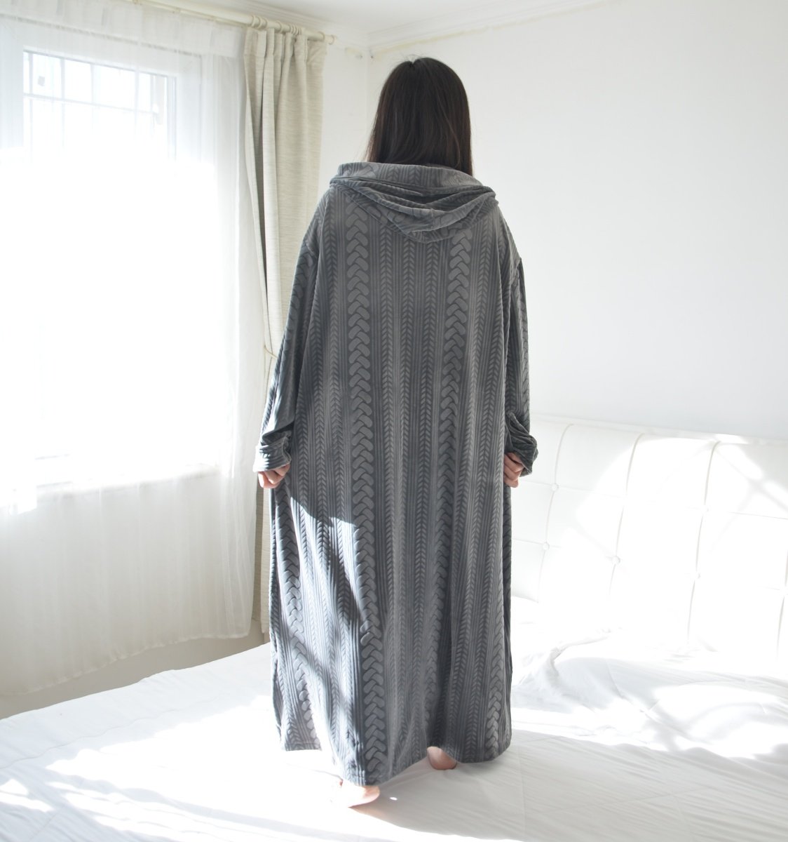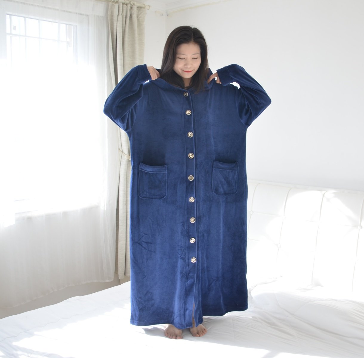 200斤加肥大码超长款脚面睡裙女冬季超柔绒开衫带帽家居睡袍睡衣
