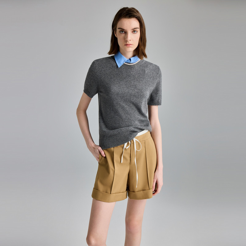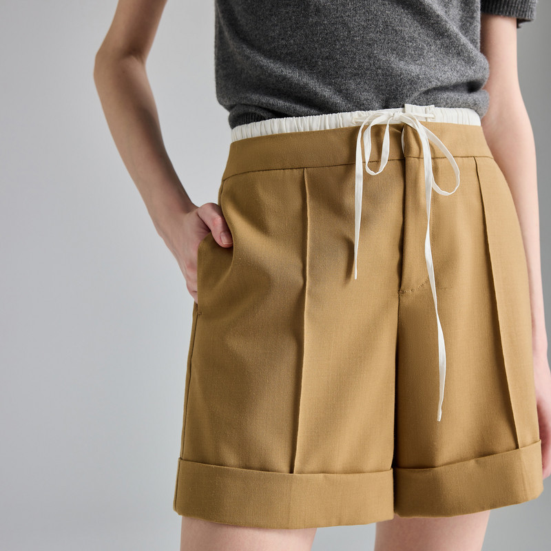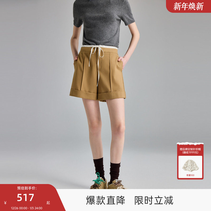 MISSCOCOON可可尼C3系列可机洗羊毛秋款智性风层次感双腰头短裤女